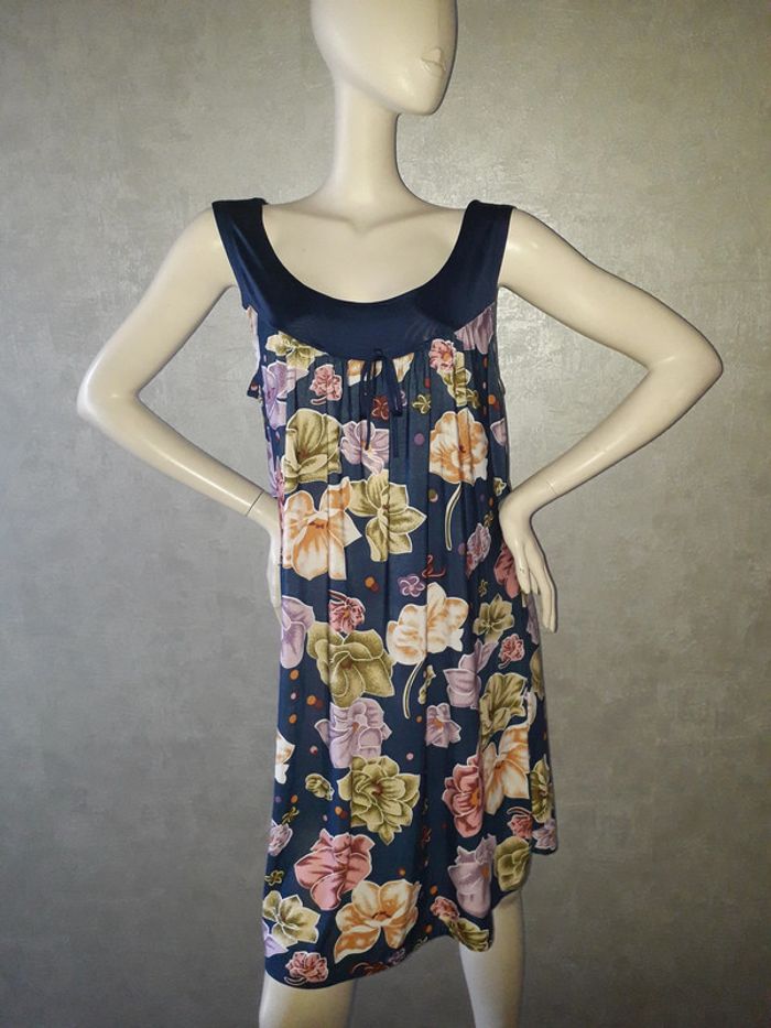 robe bleu marine et fleurie taille 46/48, largeur aiselle à aisselle 60 cm, matière fluide et élasthane #46petitefee3
