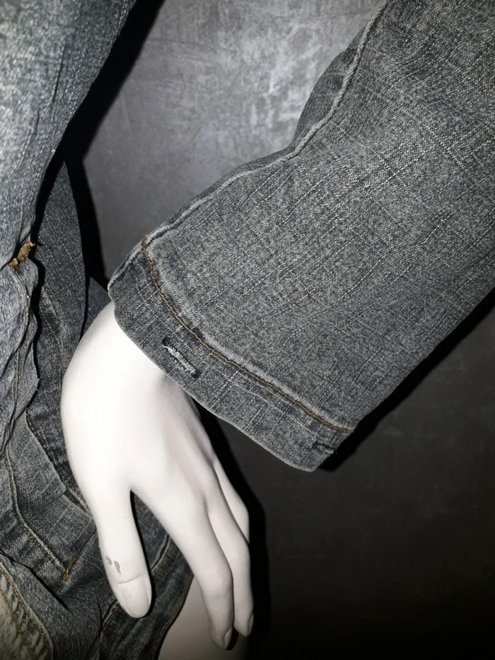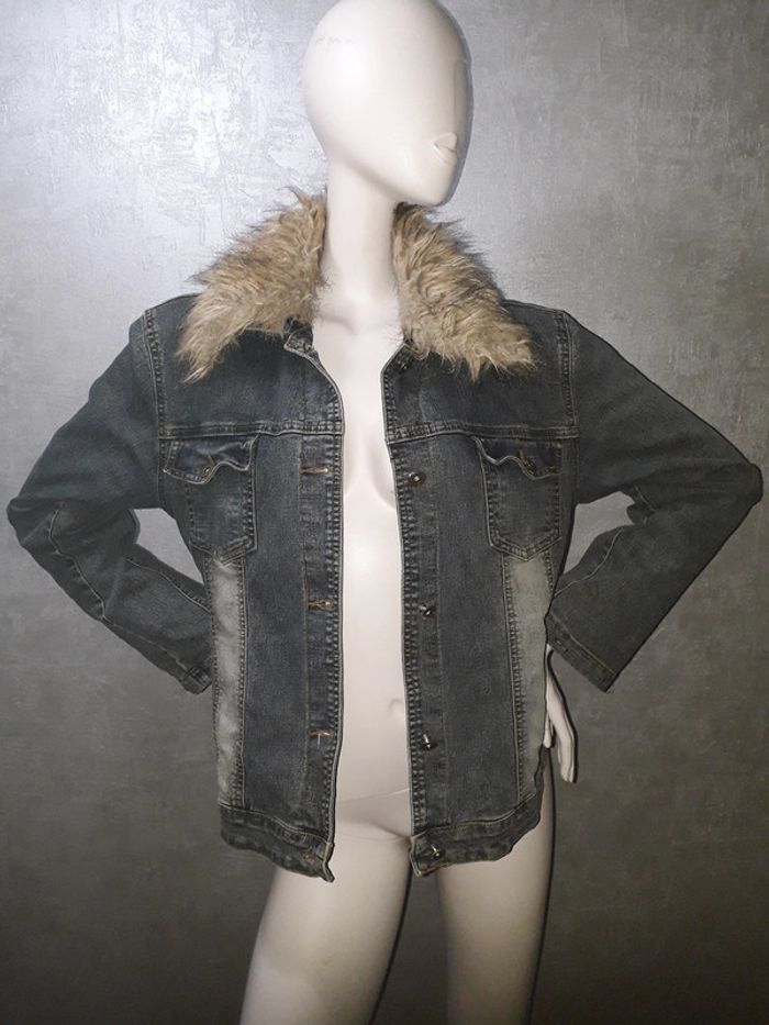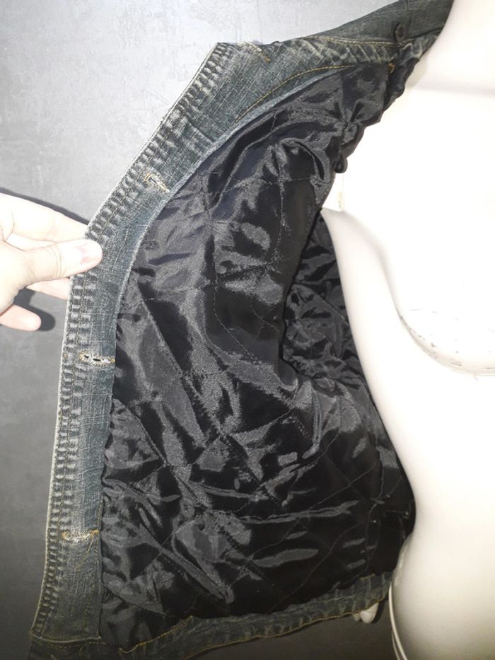 veste en jeans doublé ( assez épaisse comme matelassé), marqué taille 4 mais taille 40, col fausse fourrure amovible, il y avait les bouts des manches en fausse fourrure mais je ne les ai plus, on voit l'emplacement des boutons en bas des manches mais on peut retourner les manches ou les laisser comme ça c'est pas génant #40petitefee3