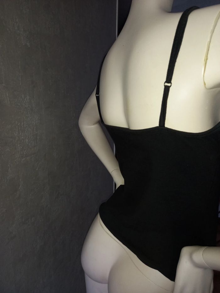 top noir women only taille 36/38, largeur aisselle à aisselle 37 cm, bretelle réglable en longueur, l'élastique au milieu de la poitrine qui est à l'intérieur est distendu mais ça ne gène en rien pour le porter car ça ne se voit pas #36petitefee3