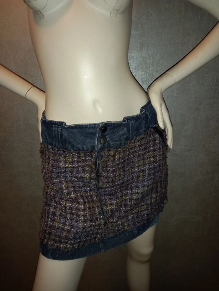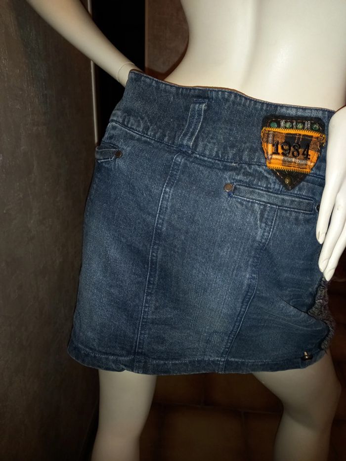 jupe en jeans desigual taille 44, matière 18 % laine sur le devant, largeur à la taille 46 cm, longueur 40 cm #44petitefee3