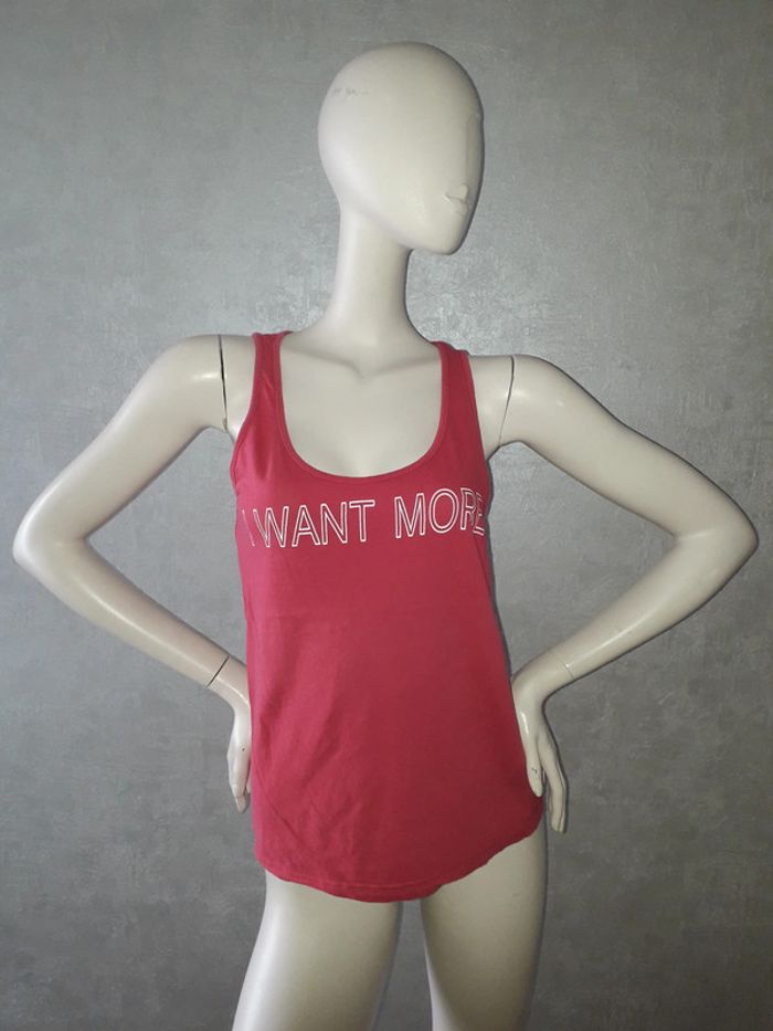 débardeur rose i want more woman only, marqué taille S mais taille 38/40 #38petitefee3