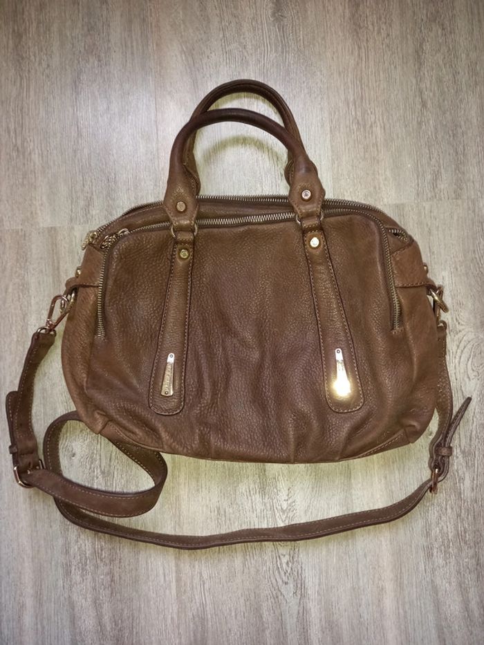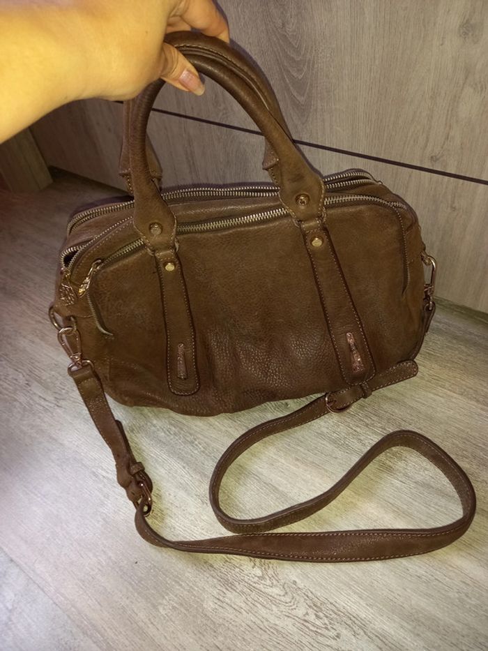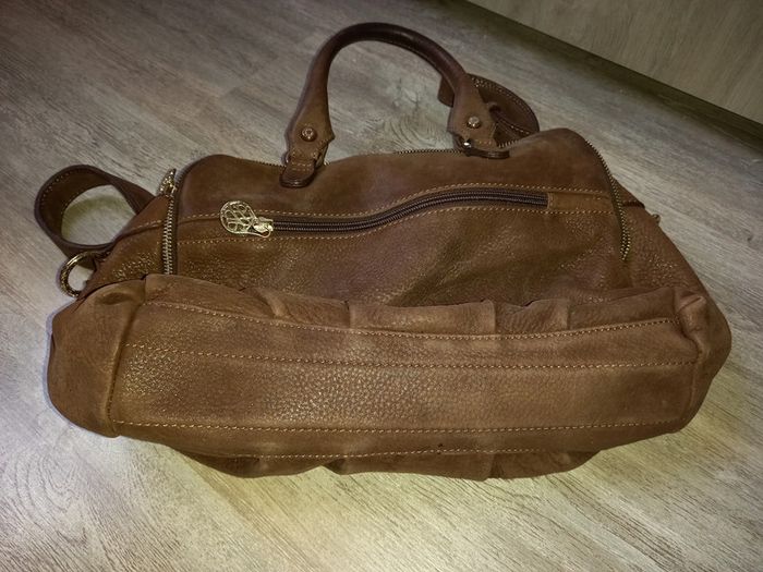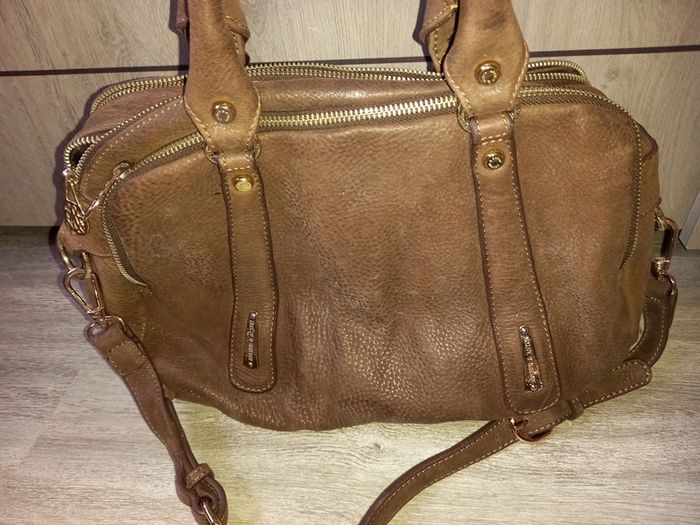 sac à main marron pailleté argenté en cuir arthur & aston, bandoulière amovible, peu porté comme neuf, hauteur 27 cm, longueur 37 cm, largeur 11 cm, nombreuses poches de rangements #sacpochettepetitefee3