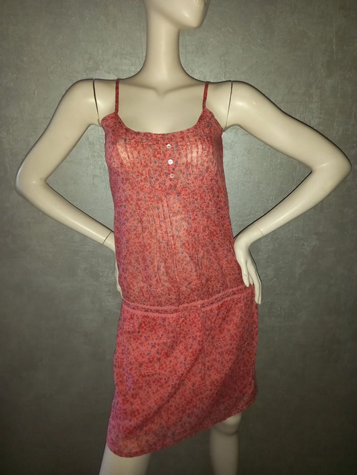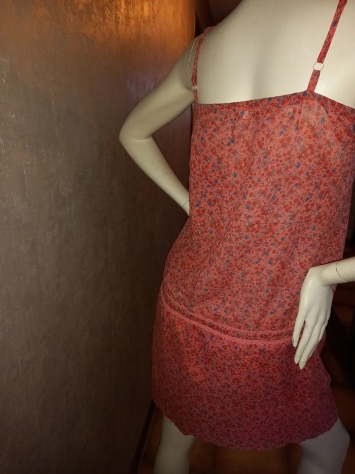 robe rose fleurie cache cache taille 38, matière 100 % coton, largeur aisselle à aisselle 41 cm, longueur du dessous de bras à en bas 71 cm, peut se resserrer à la taille avec un lien #38petitefee3