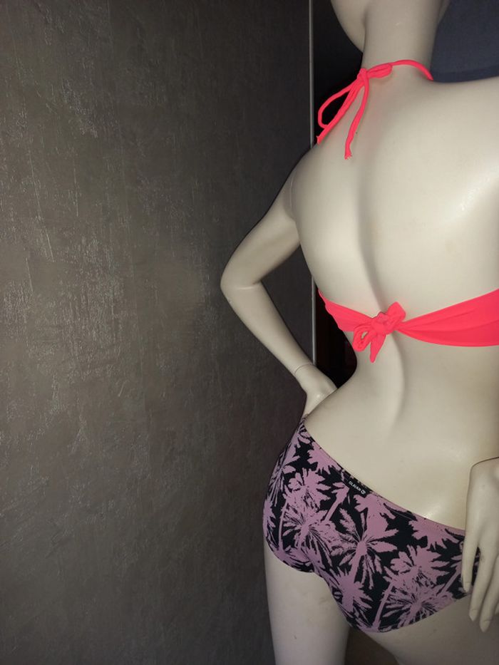 maillot de bain 2 pièces rose fluo palmier olaian taille 40