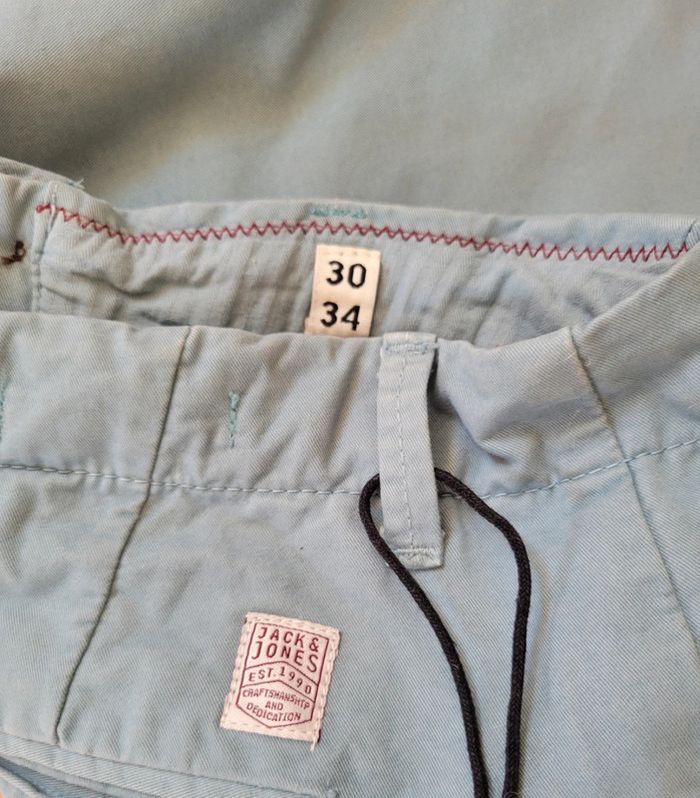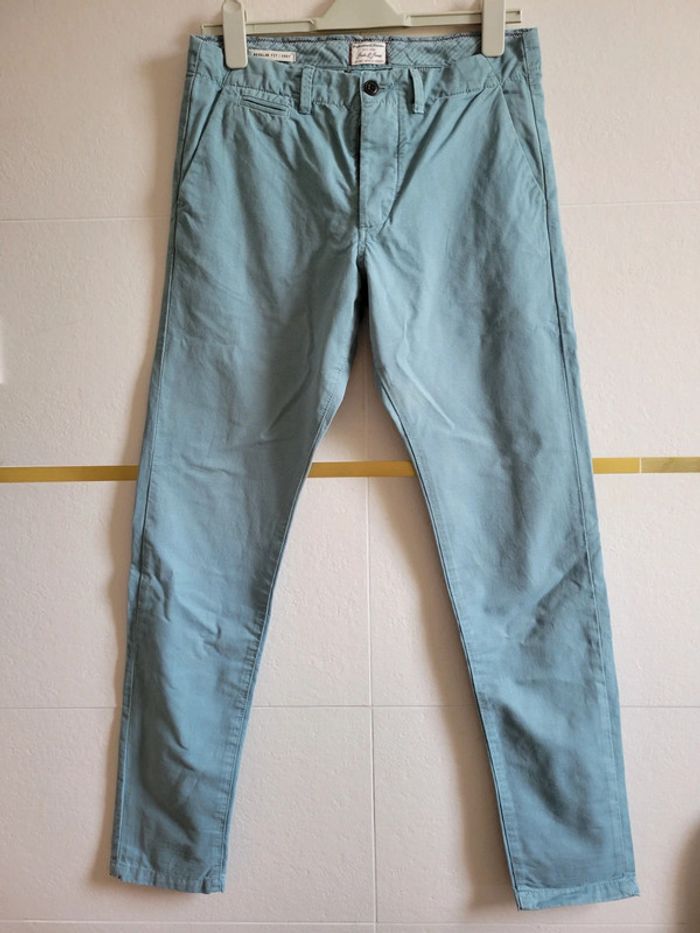 Pantalon chino bleu clair/ turquoise. Marque Jack & Jones. Taille 30 longueur 34. En très bon état 🙂