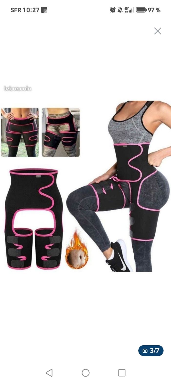 Très bon état peu servis !!! Prix: 15€ Envoi rapide et soigné 💗 Ceinture amincissante pour femme - Taille haute - Perte de poids - Réglable - Pour amincir les hanches et les fessiers Ceinture d'entraînement de haute qualité : le bandage taille haute est fabriqué en néoprène ultra épais, sans latex, ce qui peut augmenter l'accumulation de chaleur et ventiler la sueur. Confortable : très confortable pour toute la journée, rapide et facile à mettre et à enlever. En outre, le support de l'aine discret peut être porté sous ou par-dessus les vêtements si nécessaire. Coupe-cuisse : notre support de compression aide à améliorer, soulage les douleurs musculaires autour de l'aine, des hanches et du bas du dos. Réglable et antidérapant : le nouveau design de la tondeuse combinée à la cuisse et à la taille est très facile à transporter et ne tombe pas facilement, vous n'avez pas à vous soucier de glisser pendant l'exercice. Brûleur des graisses : lorsque vous faites de l'exercice ou faites des choses à la maison, soulevez vos fesses, jambes et le bas de l'abdomen soulève la graisse. Vous pouvez utiliser cette ceinture taille haute pour le vélo, la course, le bateau, l'exercice et d'autres activités physiques