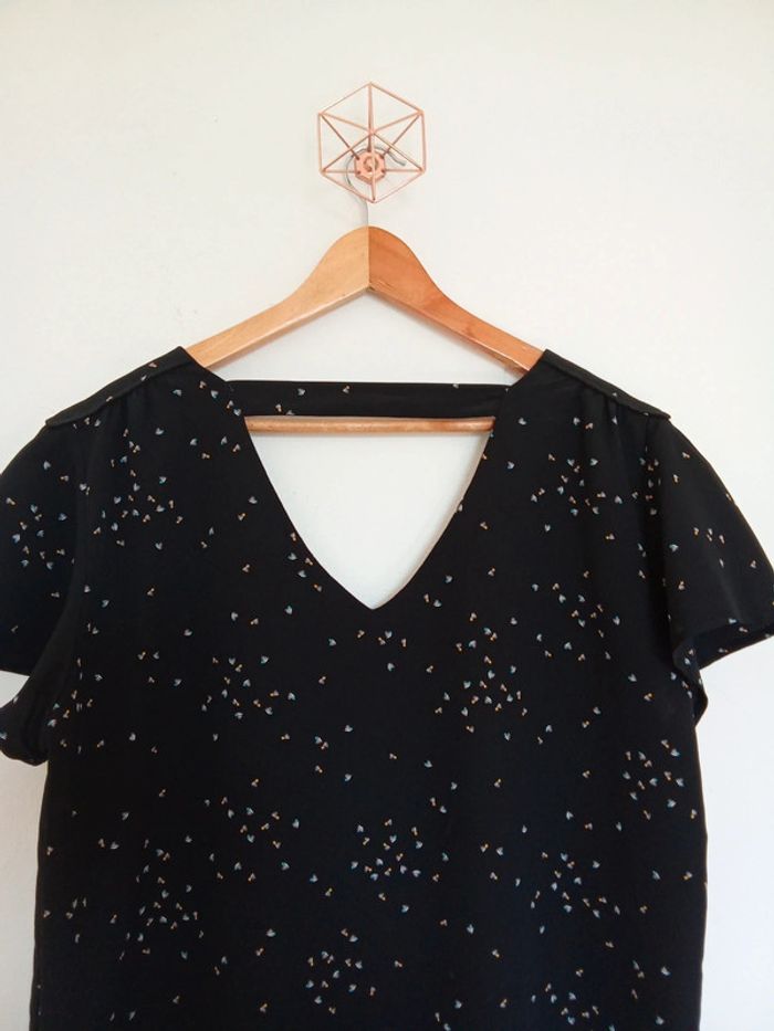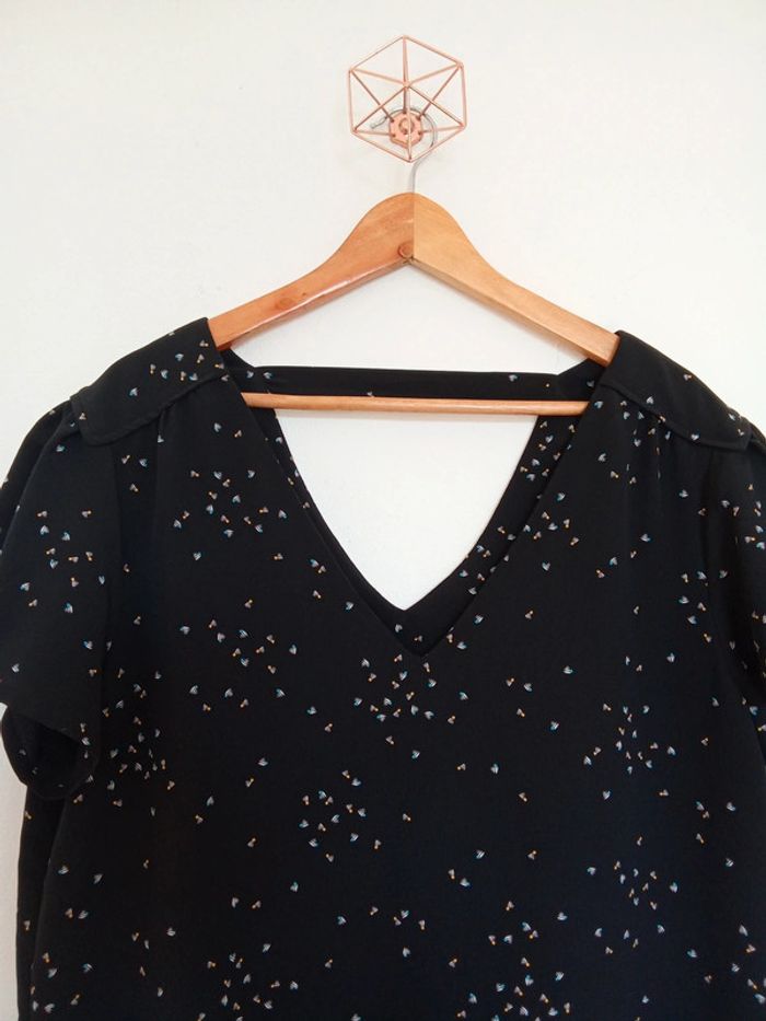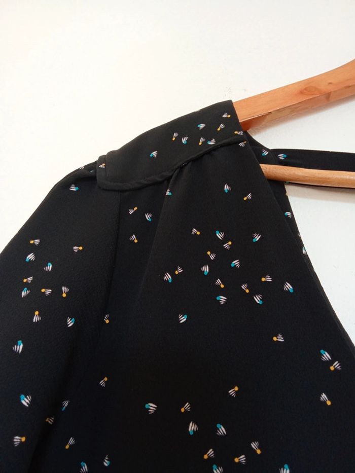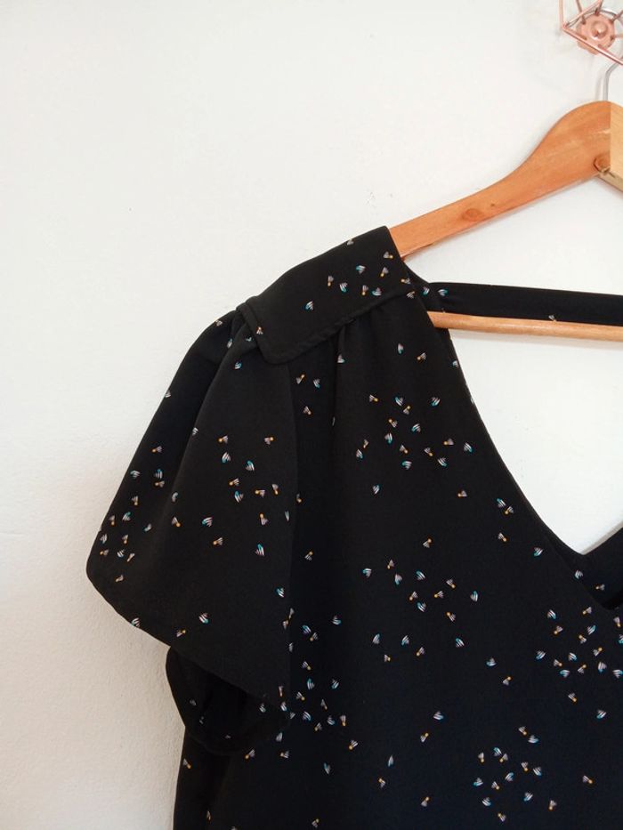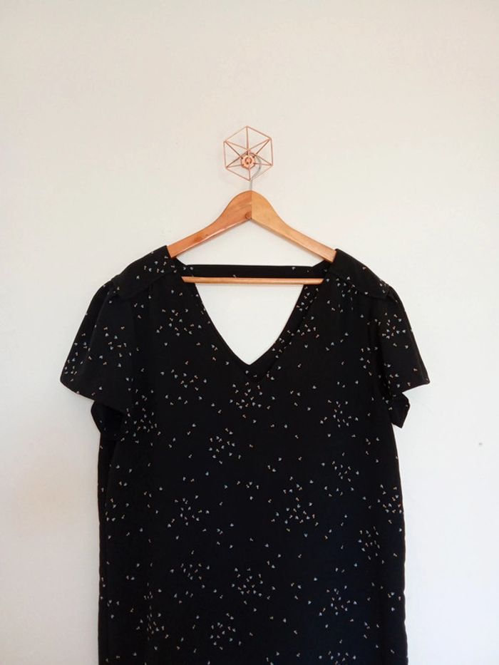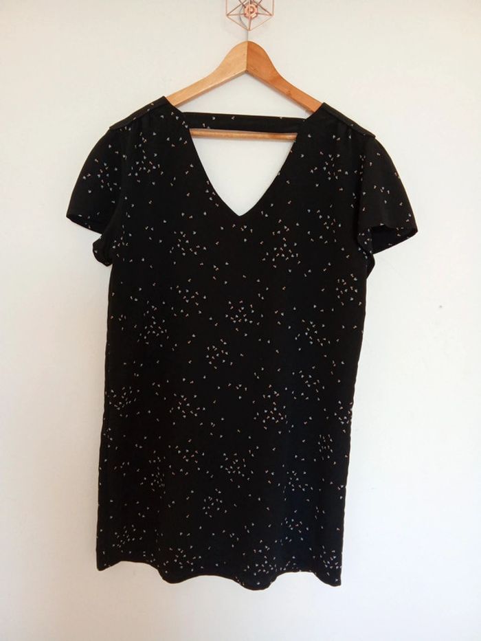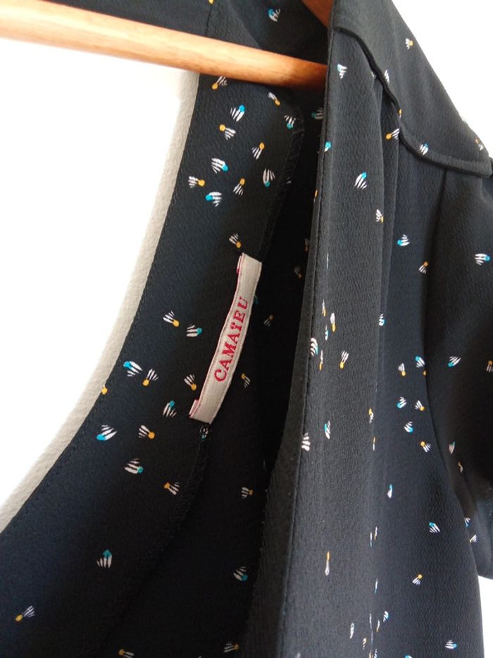 Robe d'été droite taille 42/44 Camaïeu. Robe noire à petit motif , manches tee shirt. Décolleté en v. Mesure d aisselle à aisselle 54cm En excellent état. Jamais portée. #soya91_habitsfemme