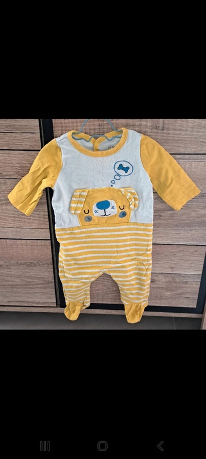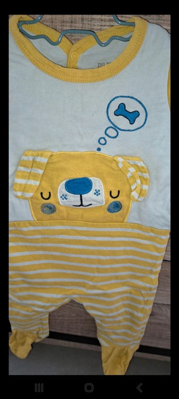 Pyjama jaune et blanc une pièce Du Pareil au Même en taille 3 mois. En très bon état.