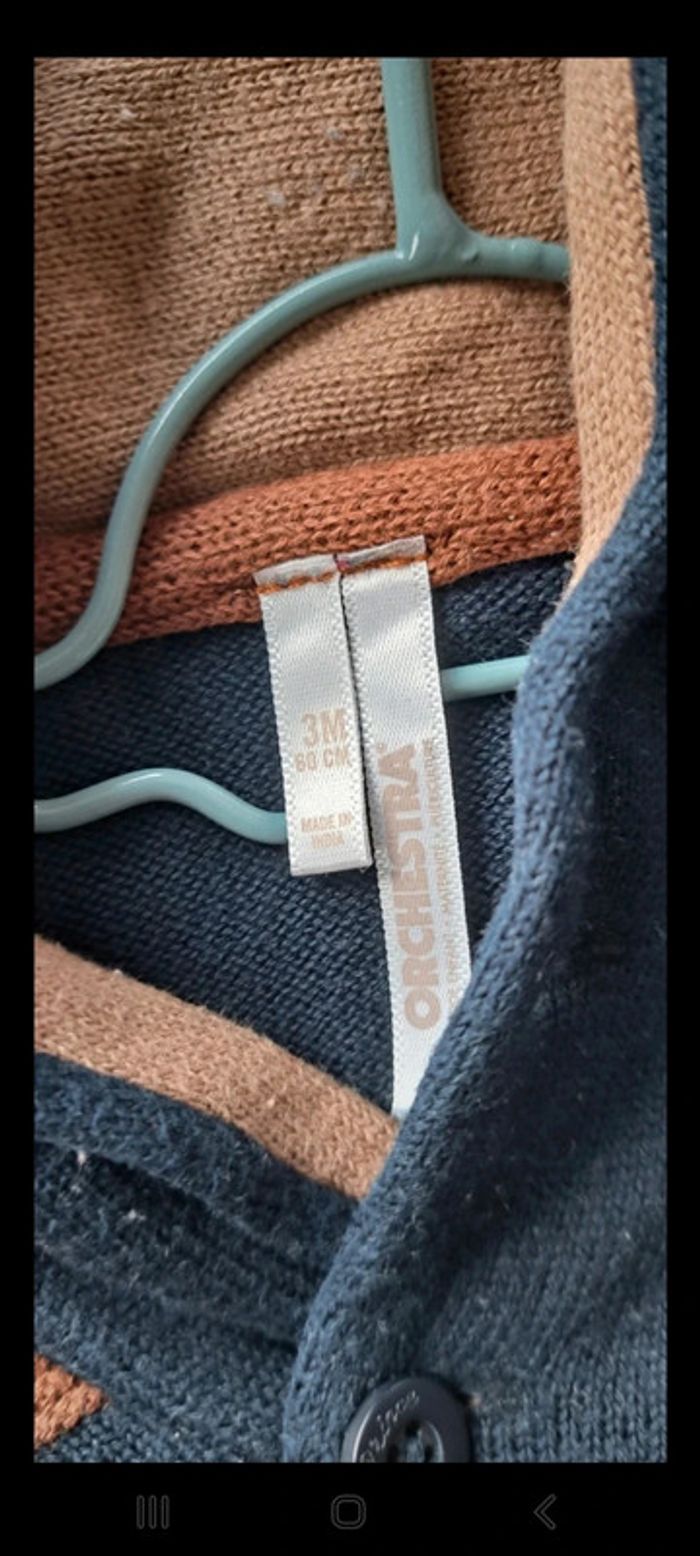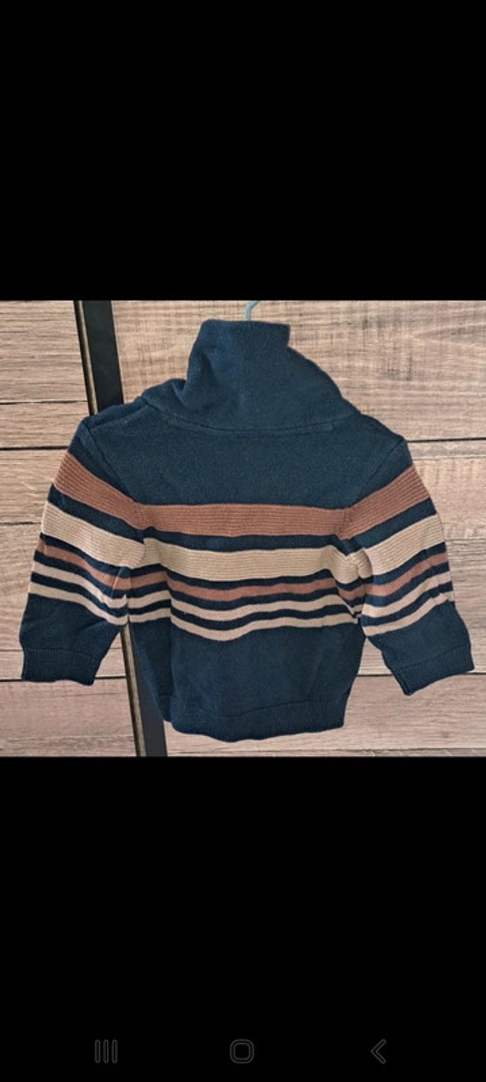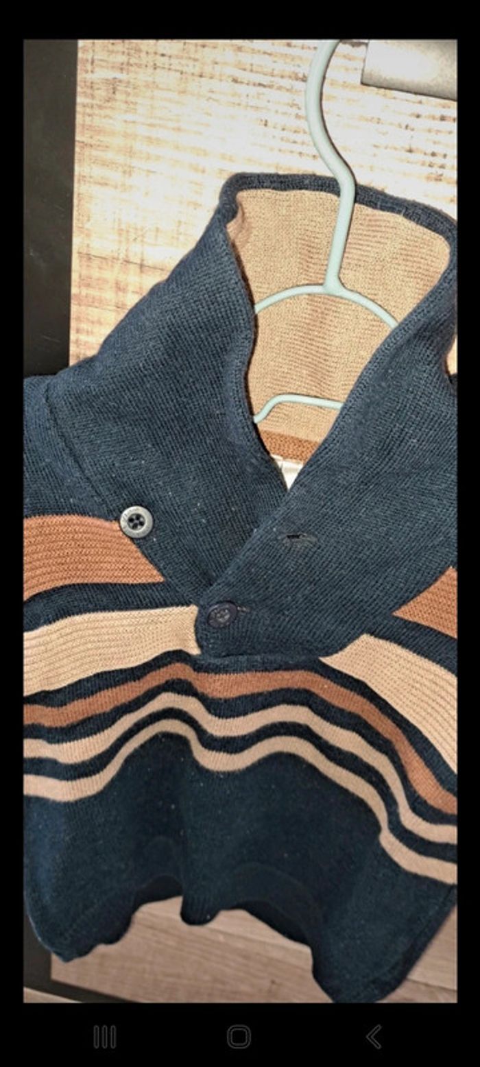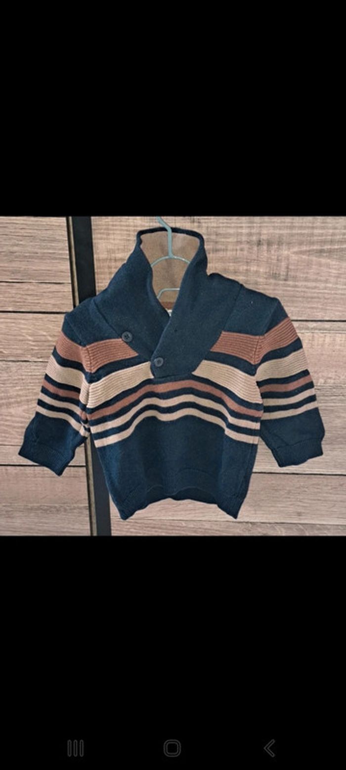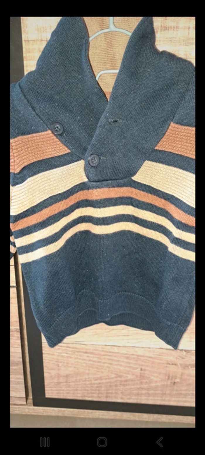 Pull rayé marron et bleu marine avec col en taille 3 mois. De la marque Orchestra. En très bon état.