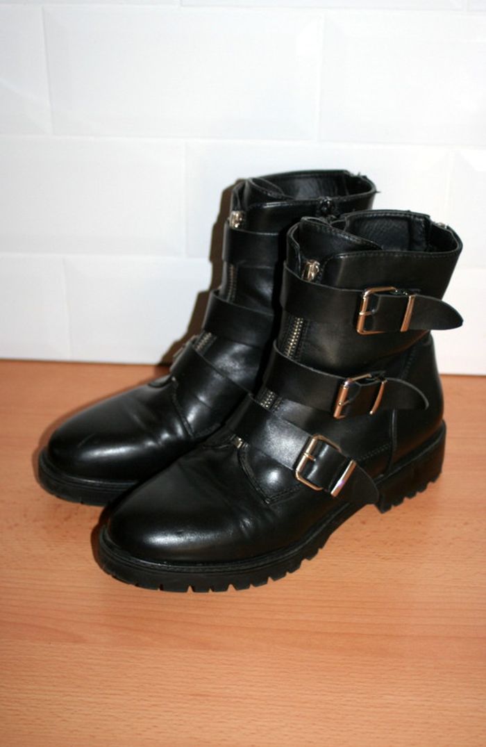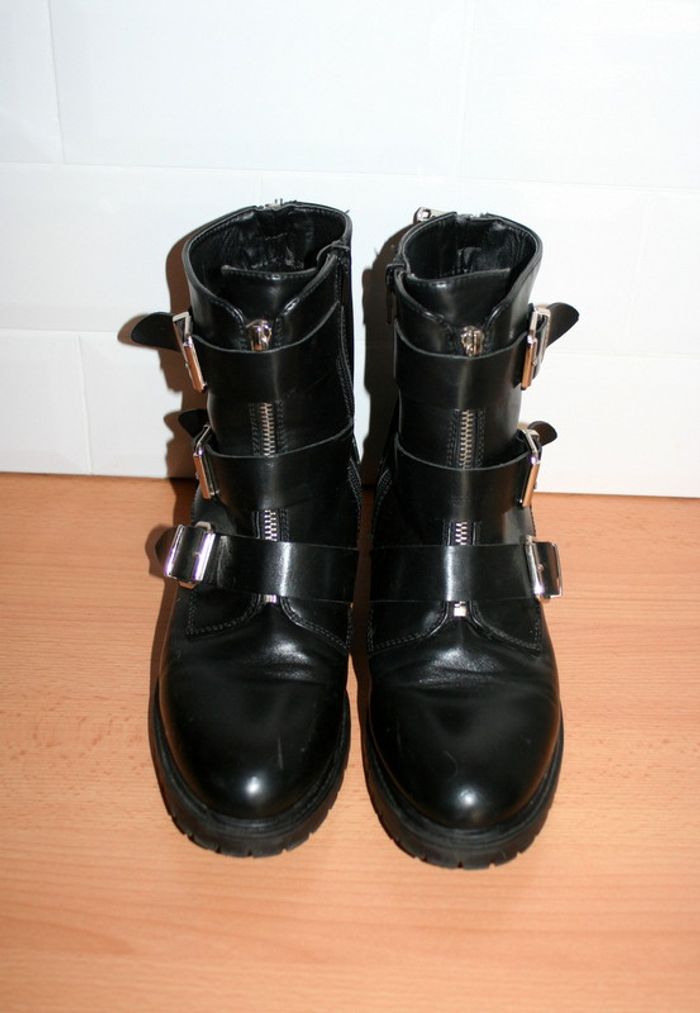 Bottines à boucles de chez Jennyfer, pointure 40, fermeture latérale pour l'enfiler, doublure chaude, 1 ou 2 griffes mais très peu portées, 1.200kg