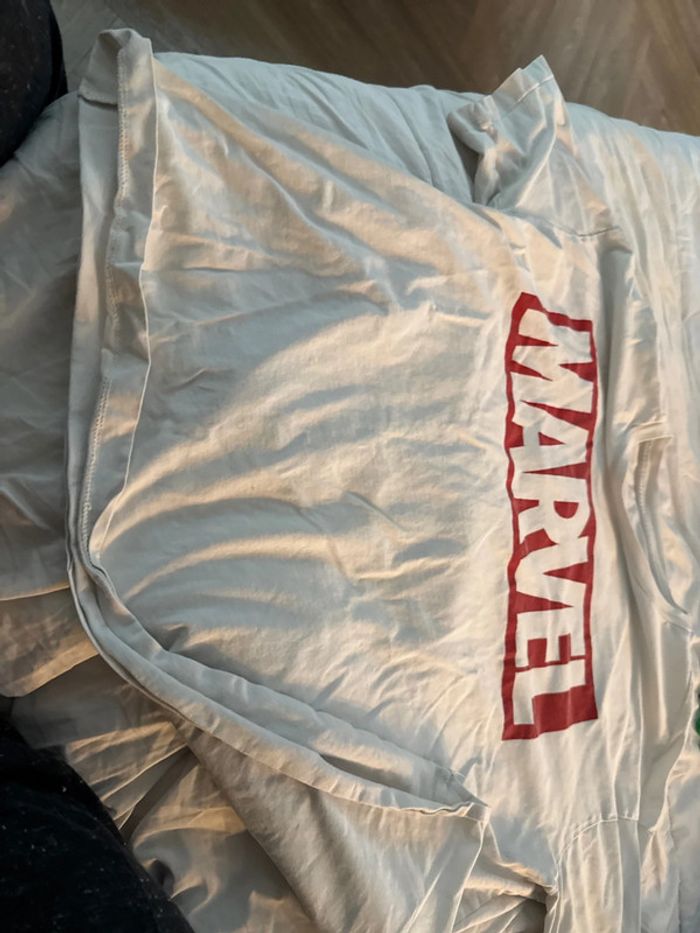 Ici 👈 frais port MINIMUM 🎁 Tee shirt marvel Rouge blanc oversized Achetée chez Hm 25€ taille XL À SAISIR 💥