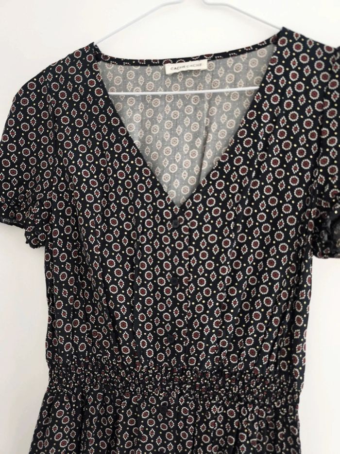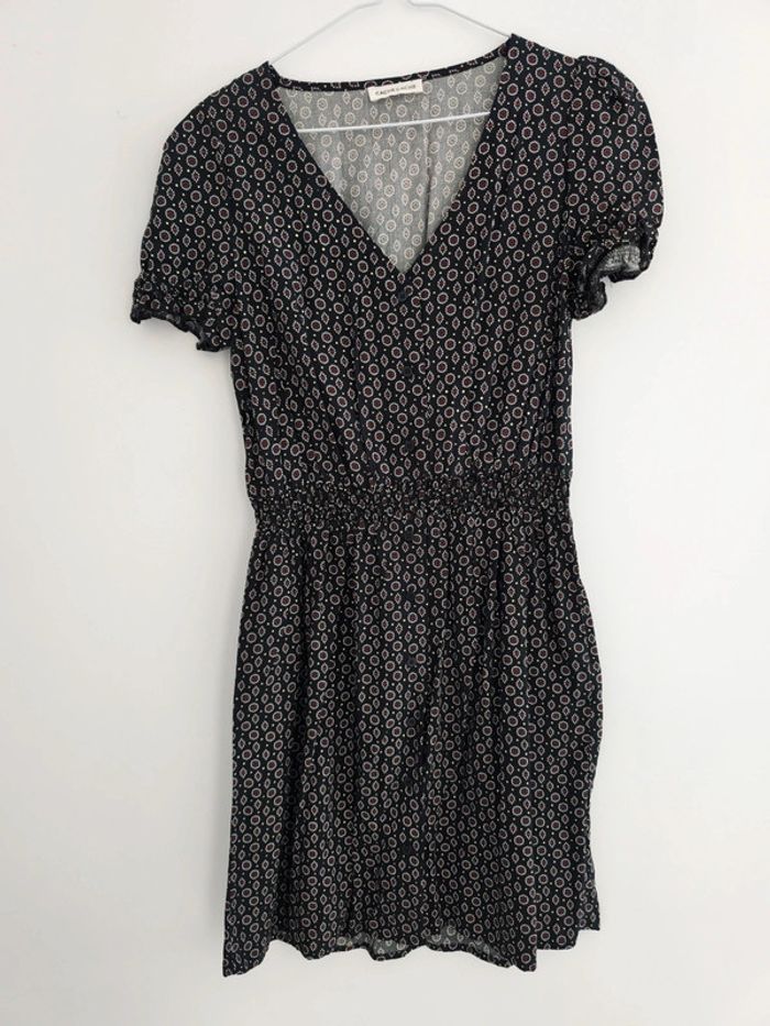 Robe casual coloris noir rouge blanc, manches courtes, taille 34 marque Cache-Cache. #ledressdejena_tailleXS #ledressdejena_taille34