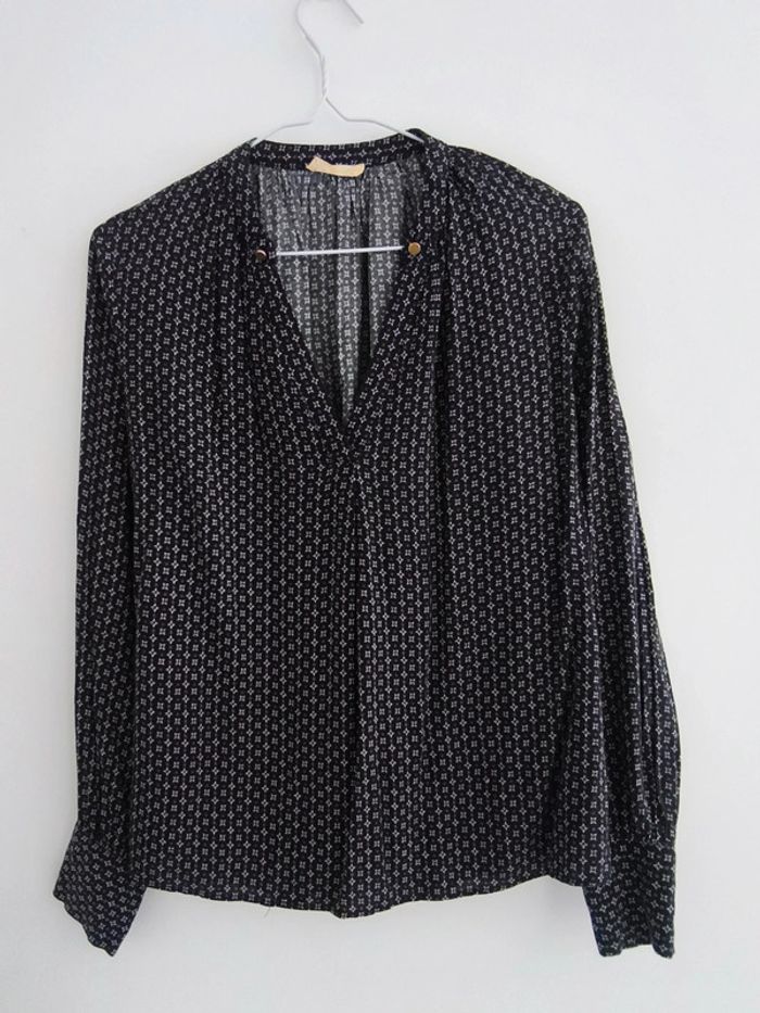 Blouse coloris noir motifs blancs, marque Cache-Cache taille 36. #ledressdejena_tailleS #ledressdejena_taille36