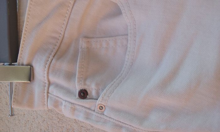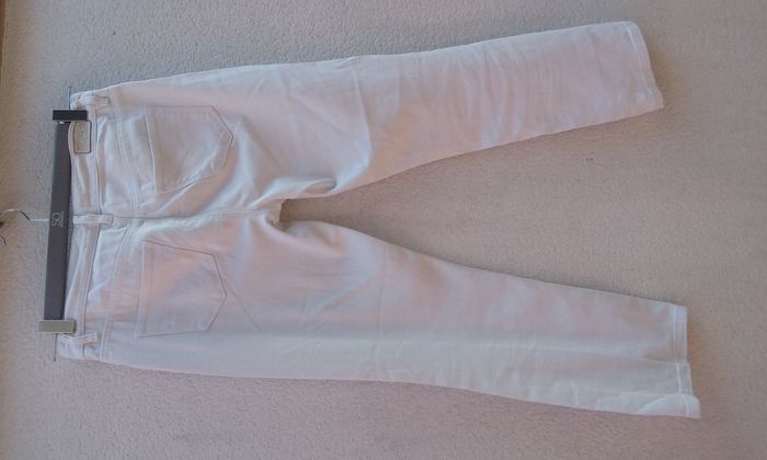 Pantacourt Denim, coupe droite, 99% coton-1% élasthanne, fermeture zippée et boutonnée.