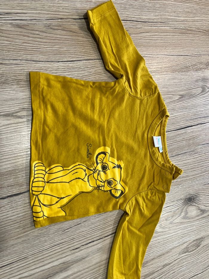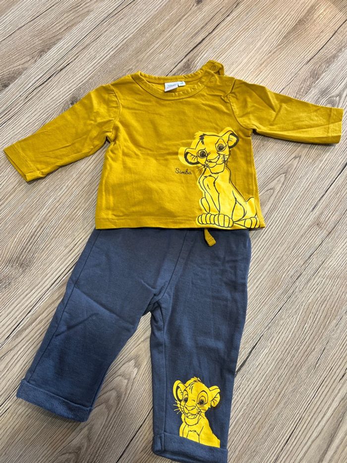 #ensemble #leroilion #simba #3mois #garçon #tresbonetat #tshirt #manchelongue #jaune #pantalon #confort #decontracte #gris #elastique #disney #disneybaby