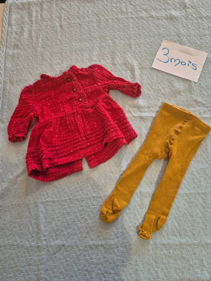 Robe "Vertbaudet" Taille 3mois 60cm + Collants "Tape à l'œil" Taille 15/17 #didoune17000_3moisf