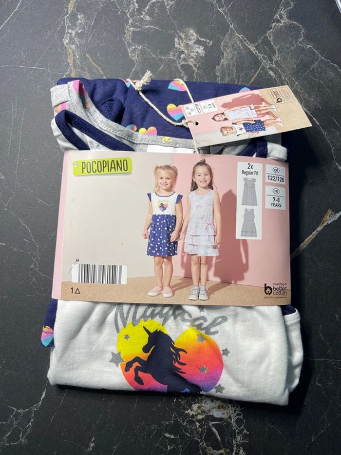 Lot de 2 très belles robes en 7/8 ans dans leur emballage 100% neuves 1 motif licornes 🦄 Et l’autre motifs arc en ciel 🌈 Parfait pour la rentrée !!