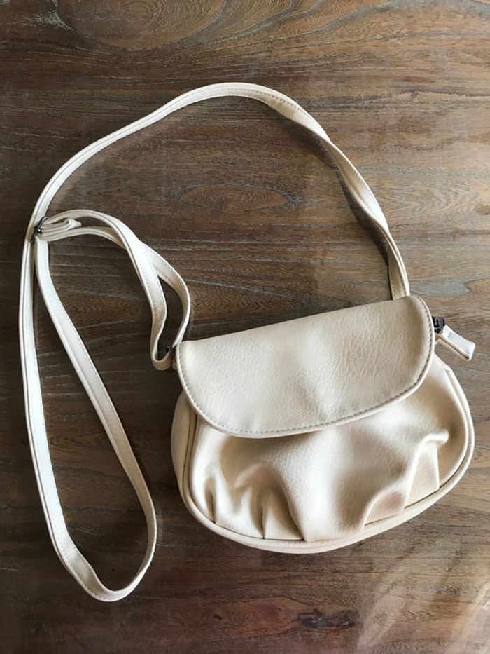 Petit sac bandoulière couleur crème avec fermeture et poche intérieur utilisé 1 ou 2 fois