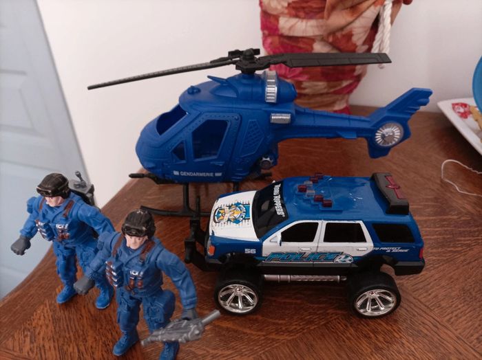 Hélicoptère + voiture de police et 2 figurines - photo numéro 1