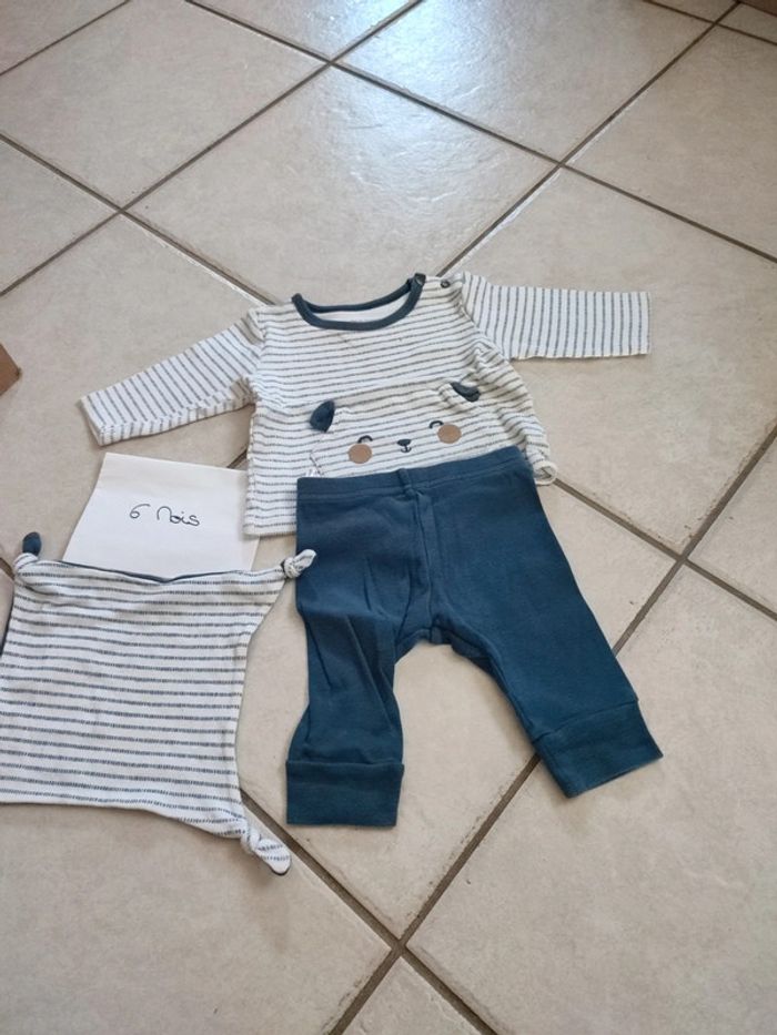 Ensemble pantalon et tee shirt avec doudou Pat et ripaton 6 mois