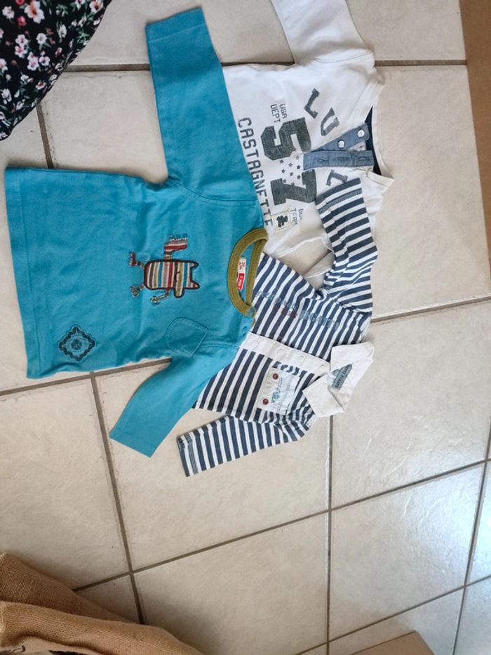 Lot de 3 tee shirts manches longues Lulu castagnette, du pareil au même, petit pirate 3 mois Bon état