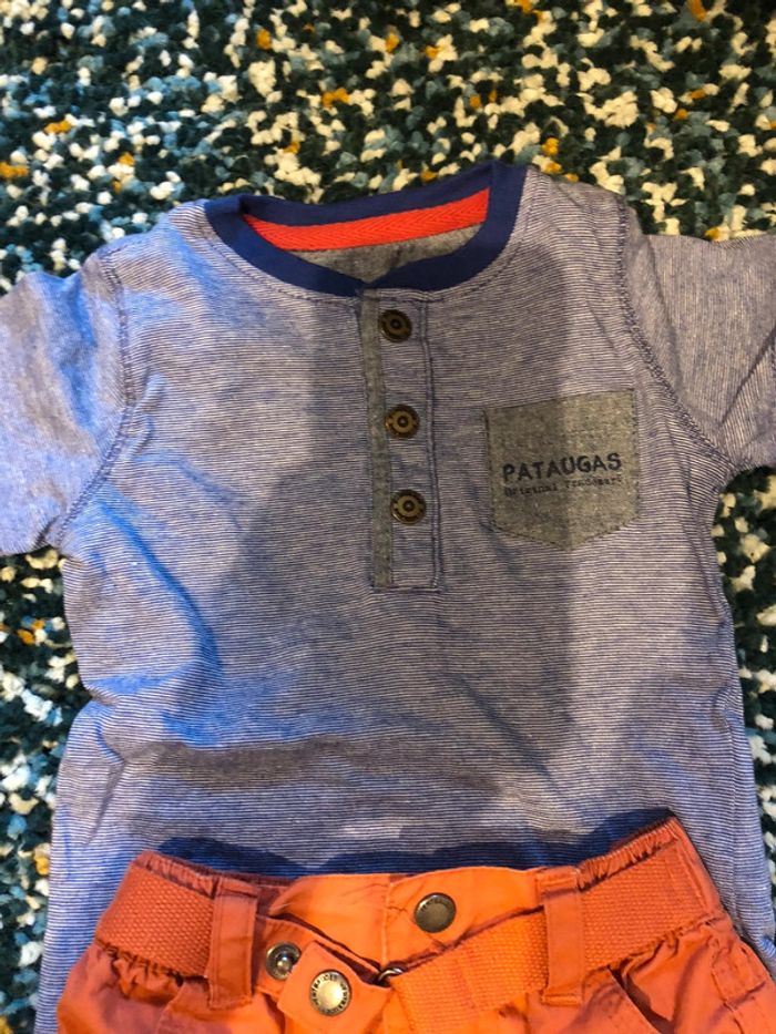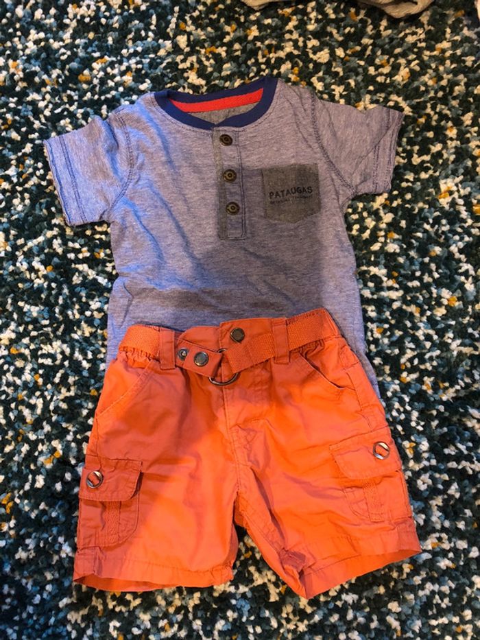 Ensemble été 6 mois Très bon état proche du neuf Short vertbaudet orange Et tee shirt bleu pataugas #lt_sixmoisgarcon