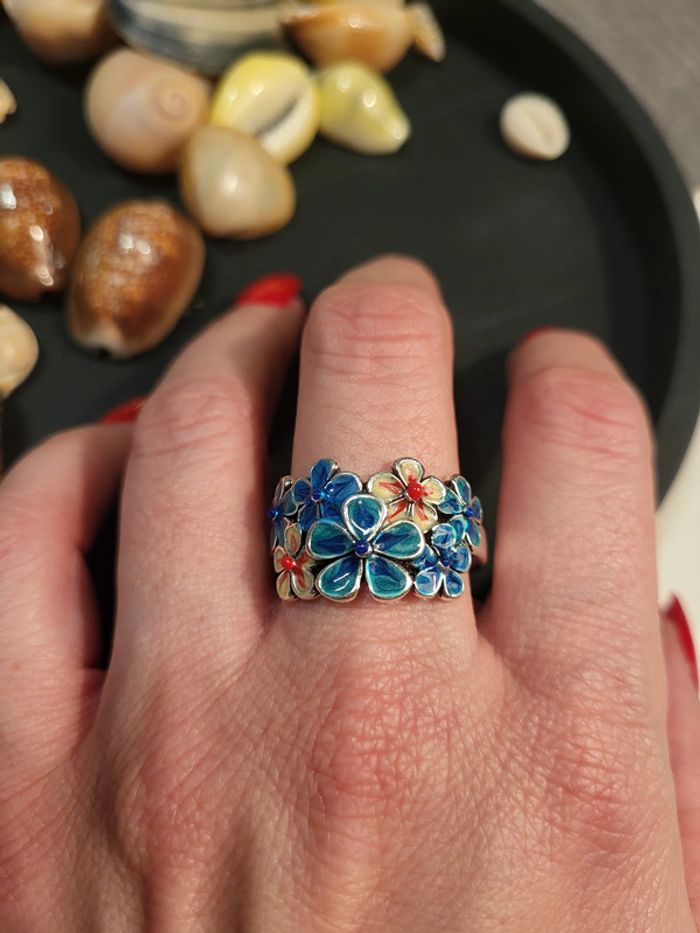 Bague réglable vintage décor floral alliage de zinc - photo numéro 1