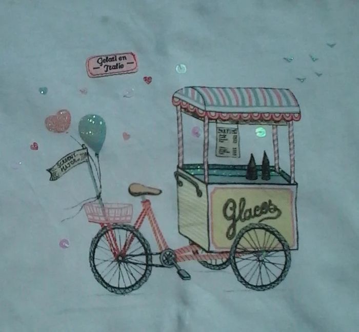 Vends ce joli tee shirt "glaces" pour fille de 5 ans (110 cm). Très originale : joli dessin, sequins, paillettes, jolie étiquette, jolis détails. Se boutonne derrière. Effet arrondi derrière. Marque : Sergent Major. Excellent état : aucun trou, aucune tache. #titiya76sergentmajor #titiya76teeshirtfille5ans #titiya765ans #titiya76fille5ans #titiya76fille