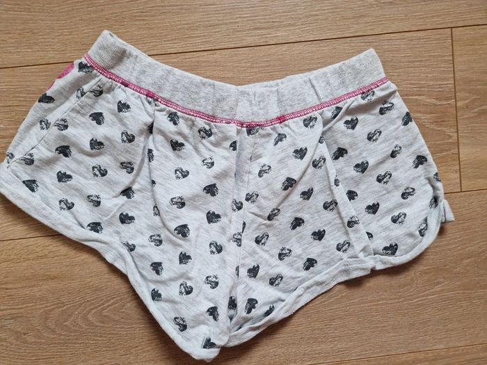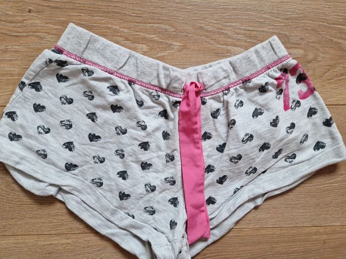 Short gris avec coeurs gris foncé et couture rose. Taille 38-40 française. dimensions : largeur a la taille élastique de 34 a 50 cm #sarahzajacfemme38 #szfemme #sz38 #szterza