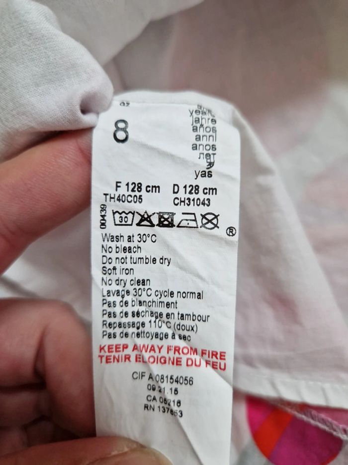Robe sans manches avec couche intérieure et fermeture éclair dans le dos. Joli motif végétal et géométrique. L'étiquette annonce un 8 ans mais ma fille la mis comme un 122 cm #sarahzajacfille7a