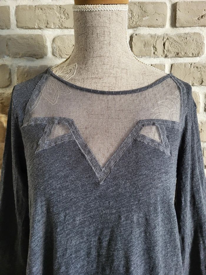 T-shirt gris anthracite col en dentelle La Redoute - photo numéro 5