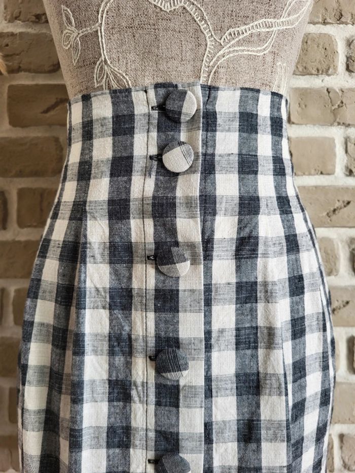Jupe vichy noir et blanc en coton et lin La Redoute - Neuve - photo numéro 9