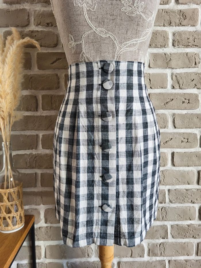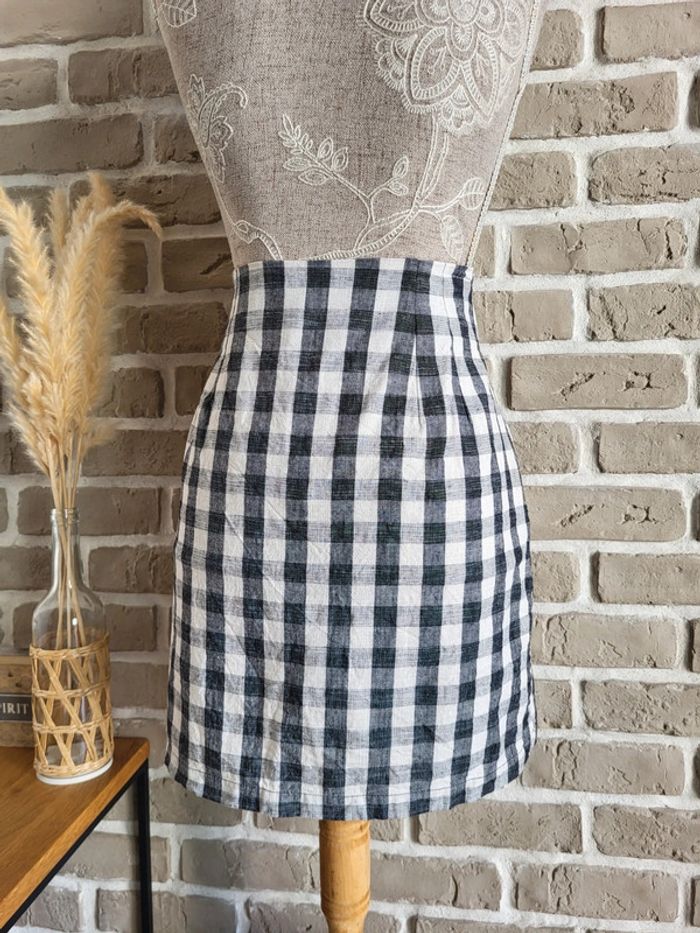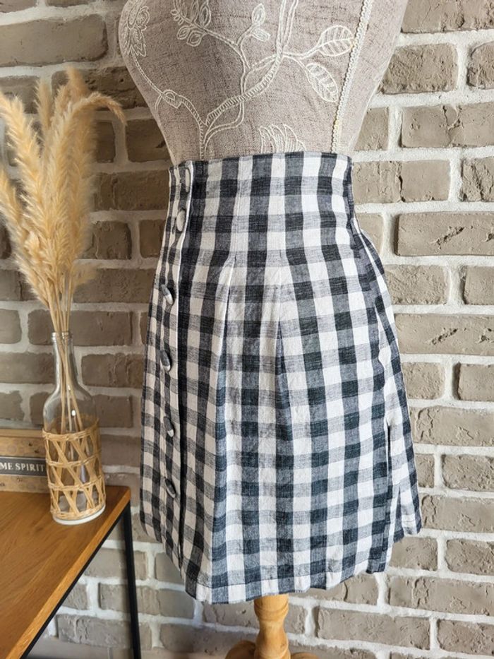 Jupe vichy noir et blanc en coton et lin La Redoute - Neuve - photo numéro 3