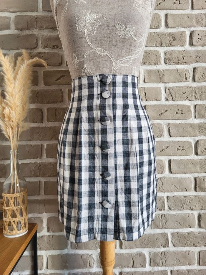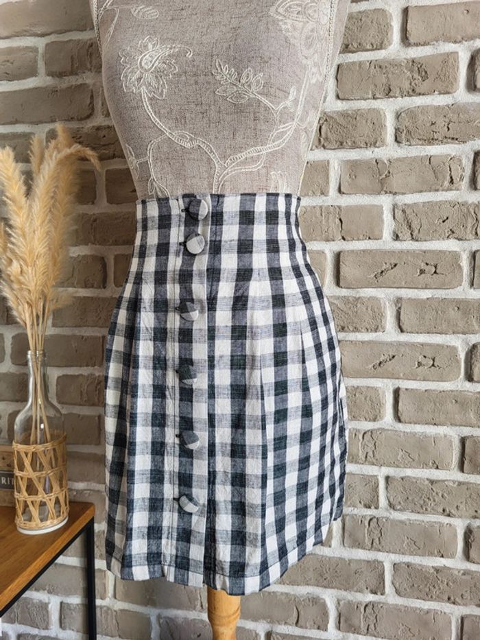 💝 Bénéficiez d'une réduction en créant lot dans mon dressing 🛍️ 🌸 Joli jupe courte de La Redoute neuve, jamais portée 🎀 Belle matière, mélange de lin et de coton, à carreaux vichy noir et blanc 🪷 Coupe flatteuse, style rétro chic, avec taille haute Boutons recouverts de tissu à l'avant 2 poches latérales 🍥 Taille S 36 Longueur : 42 cm 🩷 Le vichy est tendance cette année : avec un simple débardeur, un t-shirt ou une petite chemise, vous aurez beaucoup de style !