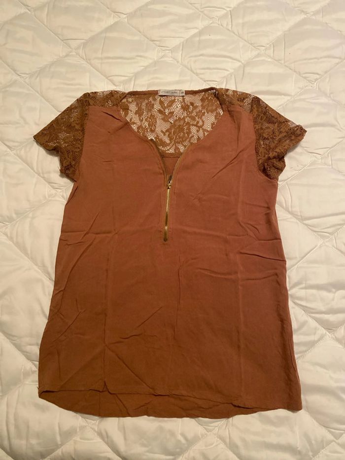 T shirt marron femme dentelle gémo taille 36 - photo numéro 1