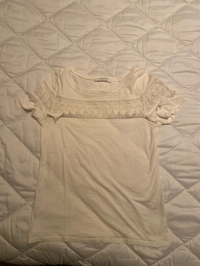 T shirt femme blanc crème taille s promod neuf - photo numéro 1