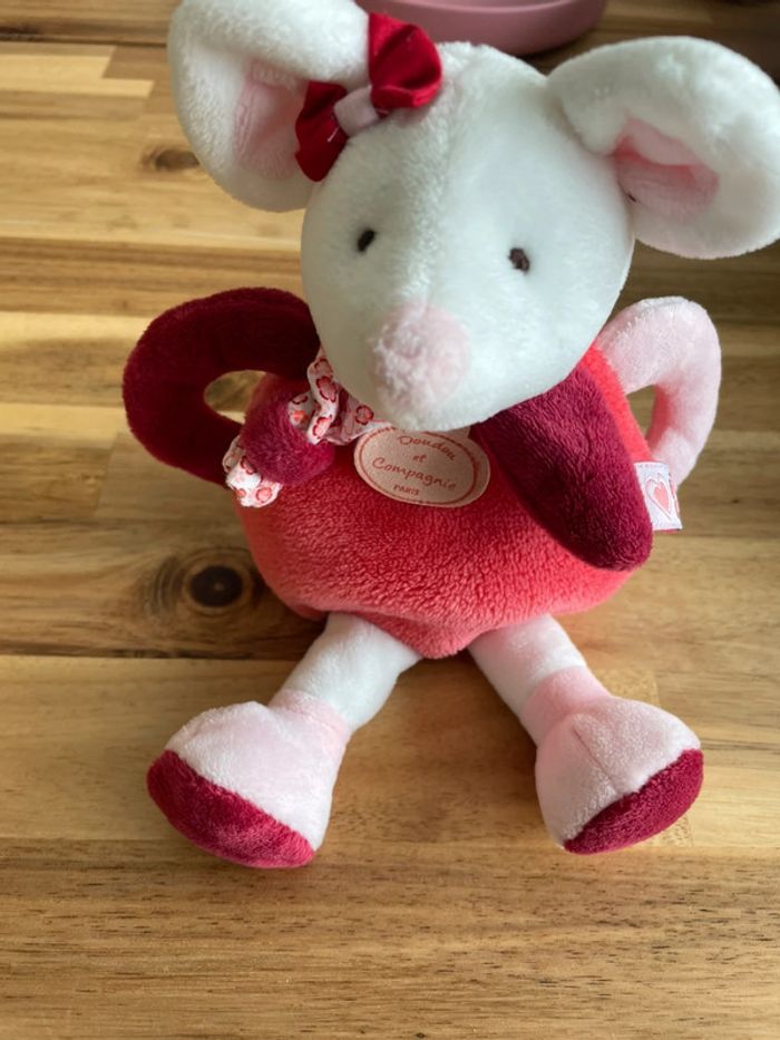 Doudou Souris Rose Grelot Hochet Clémentine doudou & compagnie