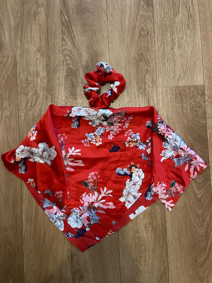 Foulchie rouge imprimé fleuri Matière douce satin Neuf