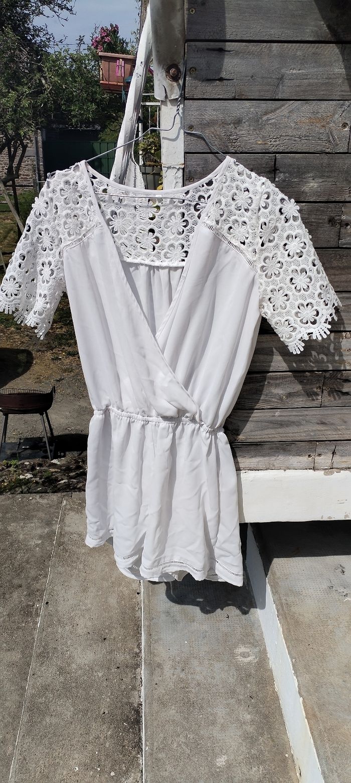 Robe short blanche à manches courtes pour femme. Marque Berska. Taille S. Comme neuve. Que mondial relais ou Relais Colis.