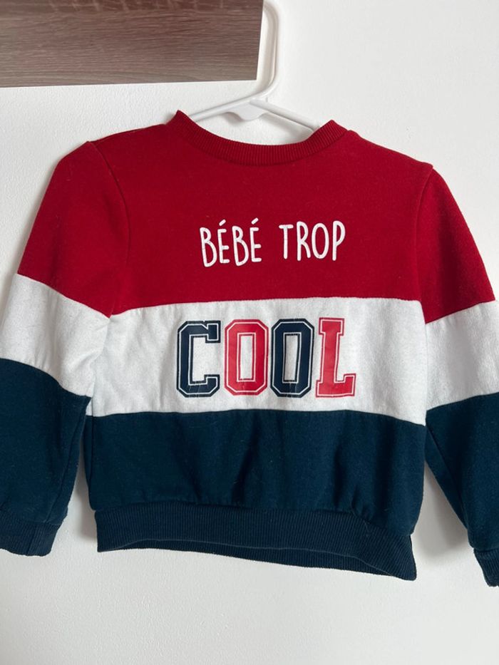 𝓓𝓮𝓼𝓬𝓻𝓲𝓹𝓽𝓲𝓯 🖋️: Pull pour garçon avec écrit « Bébé trop cool ». 𝓒𝓸𝓾𝓵𝓮𝓾𝓻 🎨 : Bleu, blanc et rouge. 𝓜𝓪𝓻𝓺𝓾𝓮 🏷️ : NPO Baby. 𝓣𝓪𝓲𝓵𝓵𝓮 📏 : 24 mois. 𝓔𝓽𝓪𝓽 🔎 : Bon état.✨ ⚠️ Écritures craquelées cf photos. #nouune76_garçon24mois ℕ’𝕙é𝕤𝕚𝕥𝕖𝕫 𝕡𝕒𝕤 à 𝕗𝕒𝕚𝕣𝕖 𝕝𝕖 𝕥𝕠𝕦𝕣 𝕕𝕖 𝕞𝕠𝕟 𝕕𝕣𝕖𝕤𝕤𝕚𝕟𝕘, 𝕧𝕠𝕦𝕤 𝕪 𝕥𝕣𝕠𝕦𝕧𝕖𝕣𝕖𝕫 𝕕𝕖𝕤 𝕒𝕣𝕥𝕚𝕔𝕝𝕖𝕤 𝕡𝕠𝕦𝕣 𝕗𝕖𝕞𝕞𝕖, 𝕙𝕠𝕞𝕞𝕖, 𝕓é𝕓é 𝕘𝕒𝕣ç𝕠𝕟 𝕖𝕥 𝕓é𝕓é 𝕗𝕚𝕝𝕝𝕖. 👩🏻🧔🏻‍♂️👶🏼👧🏼ℝé𝕕𝕦𝕔𝕥𝕚𝕠𝕟𝕤 𝕤𝕦𝕣 𝕝𝕖𝕤 𝕝𝕠𝕥𝕤 𝕒𝕔𝕥𝕚𝕧é𝕖𝕤. 💸 𝔼𝕟𝕧𝕠𝕚𝕤 𝕣𝕒𝕡𝕚𝕕𝕖𝕤 𝕖𝕥 𝕤𝕠𝕚𝕘𝕟é𝕤. 🚚 📦 𝕄𝕒𝕚𝕤𝕠𝕟 𝕟𝕠𝕟 𝕗𝕦𝕞𝕖𝕦𝕣. 🚭 🧼 𝕋𝕠𝕦𝕤 𝕝𝕖𝕤 𝕥𝕖𝕩𝕥𝕚𝕝𝕖𝕤 𝕤𝕠𝕟𝕥 𝕧é𝕣𝕚𝕗𝕚é𝕤 𝕖𝕥 𝕝𝕒𝕧é𝕤 𝕒𝕧𝕒𝕟𝕥 𝕖𝕟𝕧𝕠𝕚 𝕞𝕒𝕚𝕤 𝕡𝕒𝕤 𝕣𝕖𝕡𝕒𝕤𝕤é𝕤. 🧺