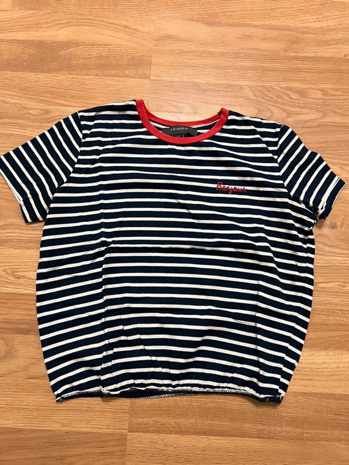 𝓓𝓮𝓼𝓬𝓻𝓲𝓹𝓽𝓲𝓯 : Tee-shirt manches courtes à rayures avec brodé « Bonjour ». 𝓒𝓸𝓾𝓵𝓮𝓾𝓻 : Blanc et bleu marine. 🎨 𝓜𝓪𝓻𝓺𝓾𝓮 : Primark. 🏷️ 𝓣𝓪𝓲𝓵𝓵𝓮 : XS. 𝓔𝓽𝓪𝓽 : Très bon état. ✨ #nouune76_femme_34 ℕ’𝕙é𝕤𝕚𝕥𝕖𝕫 𝕡𝕒𝕤 à 𝕗𝕒𝕚𝕣𝕖 𝕝𝕖 𝕥𝕠𝕦𝕣 𝕕𝕖 𝕞𝕠𝕟 𝕕𝕣𝕖𝕤𝕤𝕚𝕟𝕘, 𝕧𝕠𝕦𝕤 𝕪 𝕥𝕣𝕠𝕦𝕧𝕖𝕣𝕖𝕫 𝕕𝕖𝕤 𝕒𝕣𝕥𝕚𝕔𝕝𝕖𝕤 𝕡𝕠𝕦𝕣 𝕗𝕖𝕞𝕞𝕖, 𝕙𝕠𝕞𝕞𝕖, 𝕓é𝕓é 𝕘𝕒𝕣ç𝕠𝕟 𝕖𝕥 𝕓é𝕓é 𝕗𝕚𝕝𝕝𝕖. 👩🏻🧔🏻‍♂️👶🏼👧🏼ℝé𝕕𝕦𝕔𝕥𝕚𝕠𝕟𝕤 𝕤𝕦𝕣 𝕝𝕖𝕤 𝕝𝕠𝕥𝕤 𝕒𝕔𝕥𝕚𝕧é𝕖𝕤. 💸 𝔼𝕟𝕧𝕠𝕚𝕤 𝕣𝕒𝕡𝕚𝕕𝕖𝕤 𝕖𝕥 𝕤𝕠𝕚𝕘𝕟é𝕤. 🚚 📦 𝕄𝕒𝕚𝕤𝕠𝕟 𝕟𝕠𝕟 𝕗𝕦𝕞𝕖𝕦𝕣. 🚭 🧼 𝕋𝕠𝕦𝕤 𝕝𝕖𝕤 𝕧ê𝕥𝕖𝕞𝕖𝕟𝕥𝕤 𝕤𝕠𝕟𝕥 𝕧é𝕣𝕚𝕗𝕚é𝕤 𝕖𝕥 𝕝𝕒𝕧é𝕤 𝕒𝕧𝕒𝕟𝕥 𝕖𝕟𝕧𝕠𝕚 𝕞𝕒𝕚𝕤 𝕡𝕒𝕤 𝕣𝕖𝕡𝕒𝕤𝕤é𝕤. 🧺