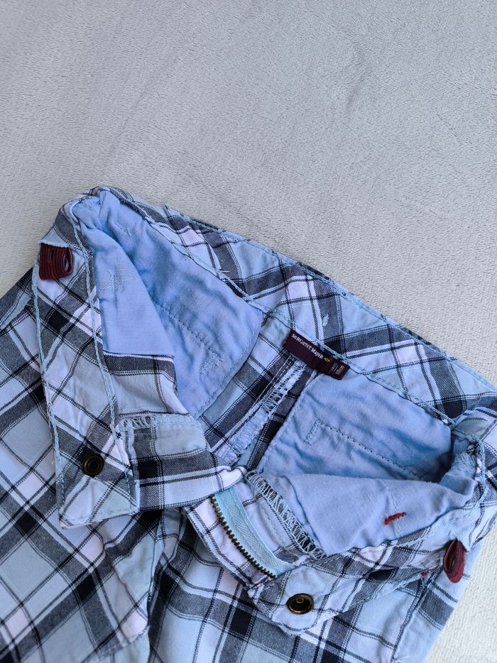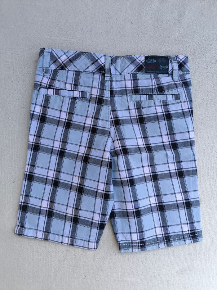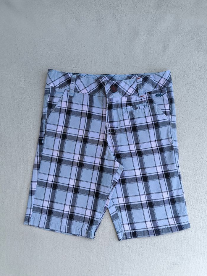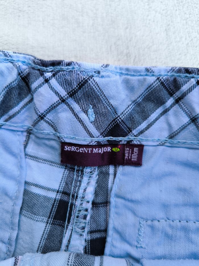 Short/Bermuda Marque Sergent Major Taille 5 ans, 110 cm • Coloris bleu ciel, marine, blanc • Imprimés carreaux, Monstres des abysses • Fermeture par fermeture éclair et pression • Taille élastique ajustable • 4 poches • Coton fin En très bon état #evelyne_garcons_5ans #evelyne_garcons