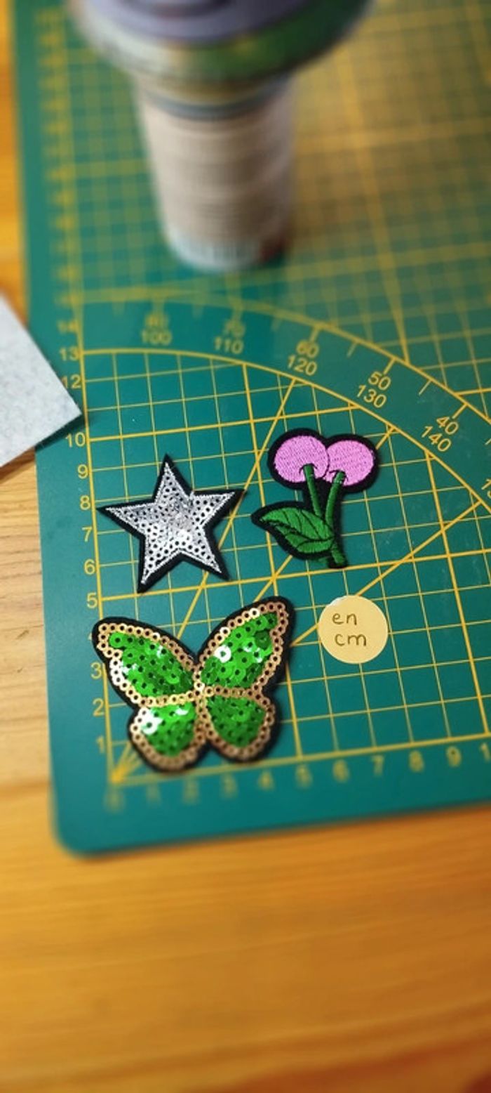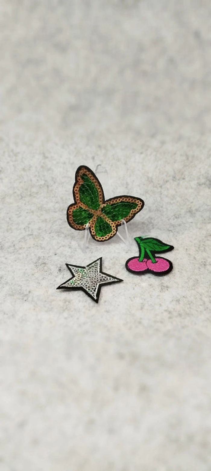 Lot de trois écussons thermocollants dont deux à sequins : des cerises une étoile et un papillon 𝐀͟𝐫͟𝐭͟𝐢͟𝐜͟𝐥͟𝐞͟𝐬͟ 𝐬͟𝐢͟𝐦͟𝐢͟𝐥͟𝐚͟𝐢͟𝐫͟𝐞͟𝐬͟ 𝐝͟𝐚͟𝐧͟𝐬͟ 𝐥͟𝐞͟ 𝐝͟𝐫͟𝐞͟𝐬͟𝐬͟𝐢͟𝐧͟𝐠͟ : #echiecusson (taille unique) 𝑇𝑎𝑔𝑠 écusson à coudre ou thermocollant réfection décoration textile écusson brodé patch accessoire customisation 𝙾𝚛𝚐𝚊𝚗𝚒𝚜𝚊𝚝𝚒𝚘𝚗 #echinaster #echi05