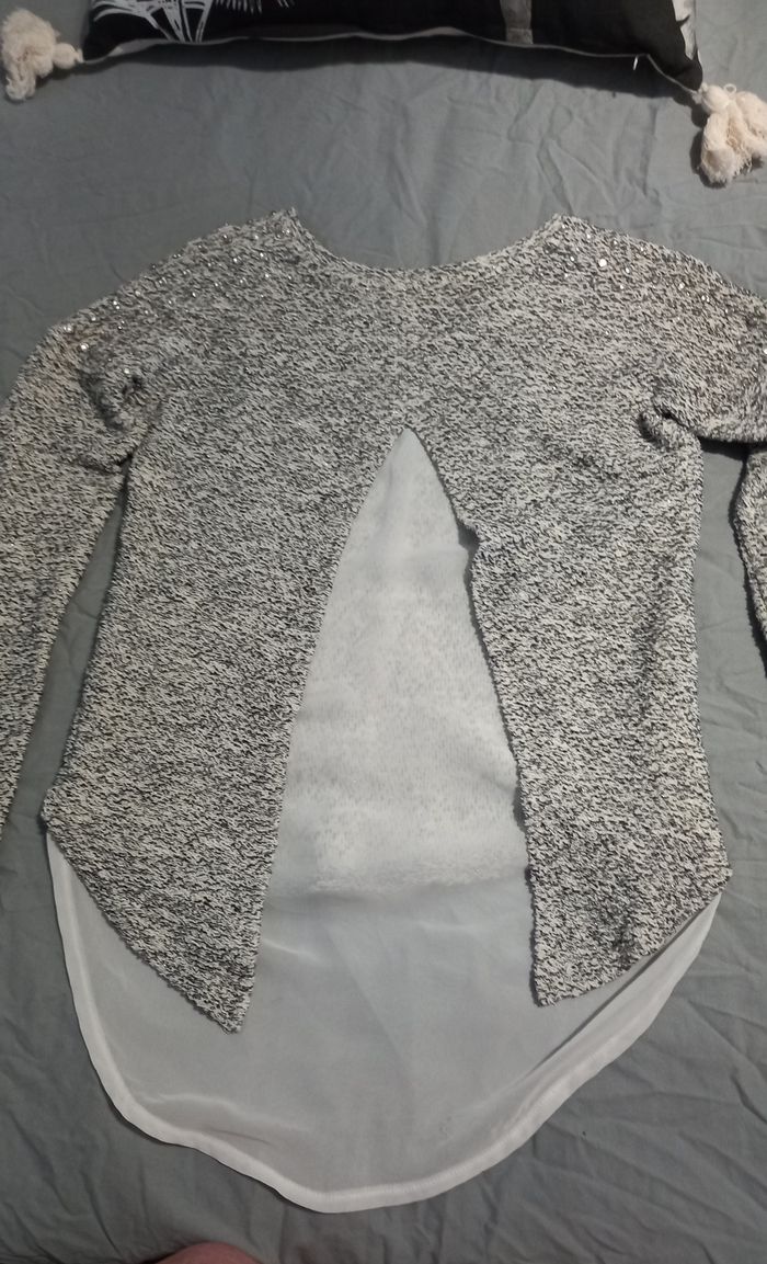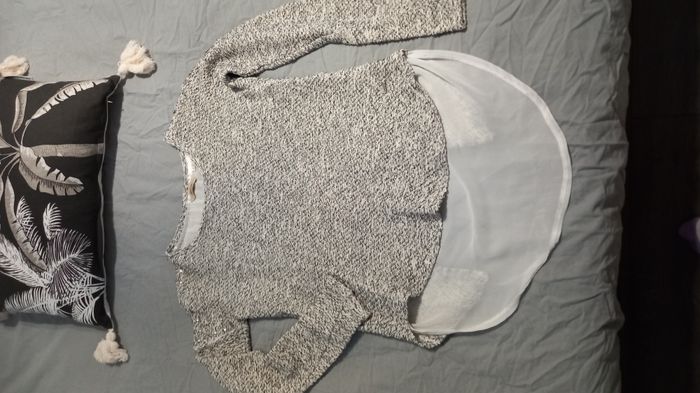 Pull SALSA gris blanc Strass aux épaules Taille S mais taille un peu plus petit #T36_imoddeco #T34_imoddeco