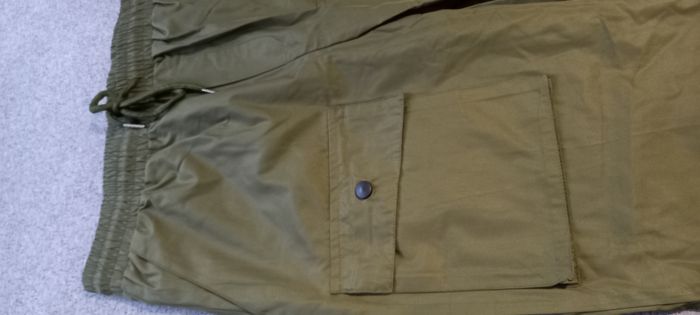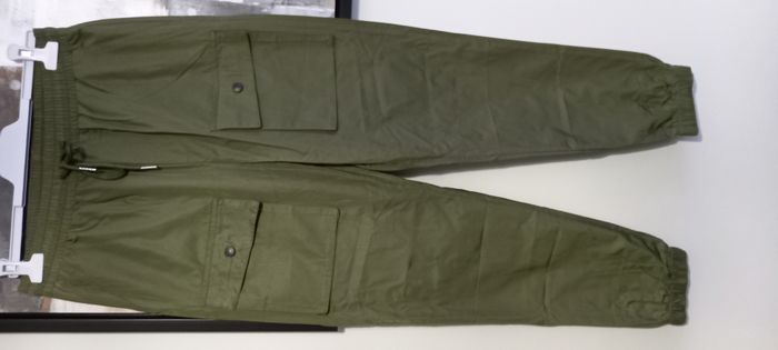 Pantalon cargo kaki Multi poches Style Sunny Taille élastique avec cordon Elastique bas des jambes Longueur 101 cm Largeur bas 14 cm Neuf jamais porté Polyester, coton, élasthanne Taille S #T36_imoddeco #homme_imoddeco