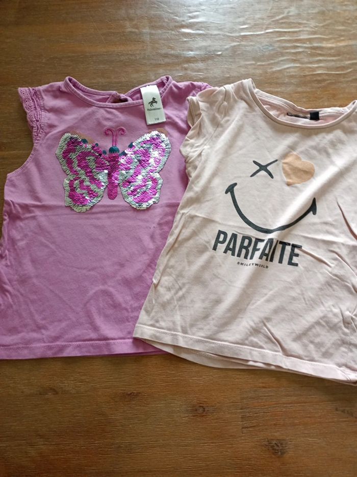 #anah1985_fille_6ans Déjà portés mais encore en bon état Taille 6 ans Marque palomino et orchestra Deux petites taches sur le t-shirt violet