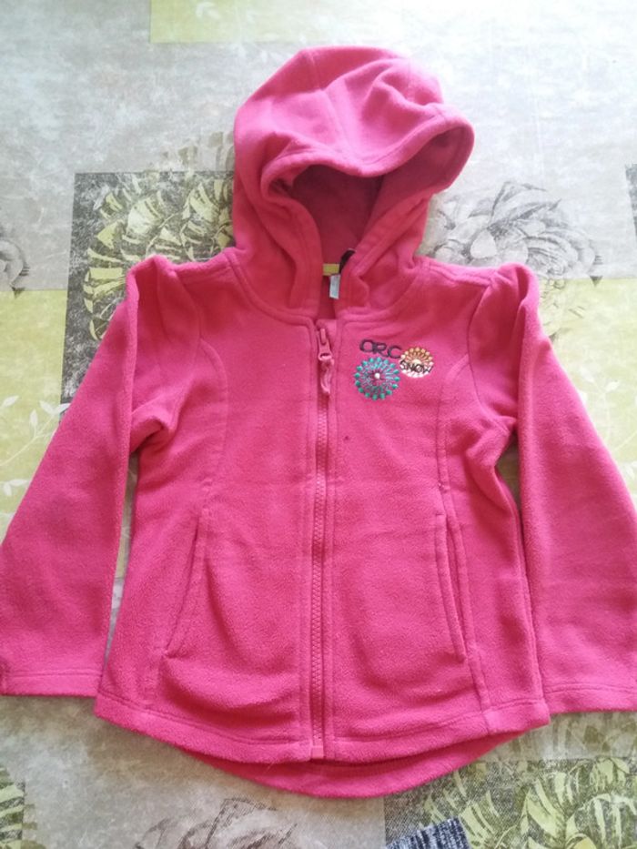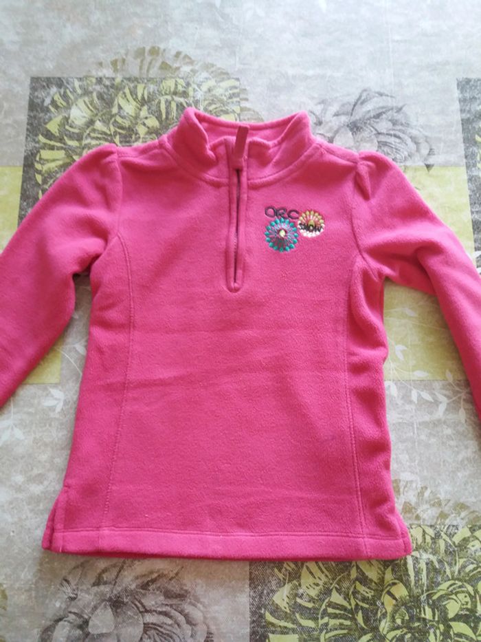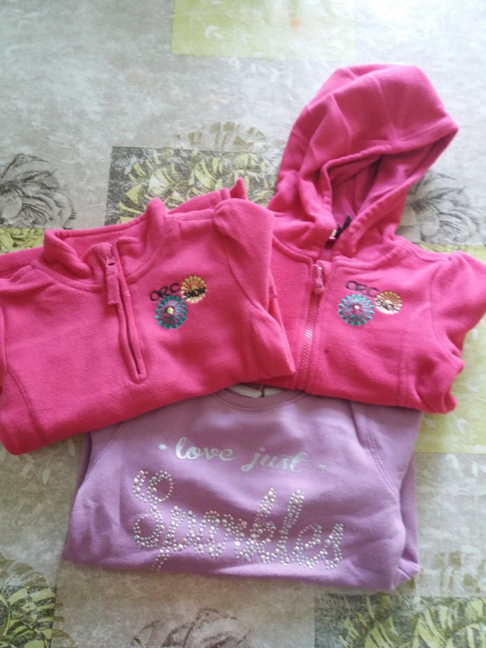 #anah1985_fille_4ans 1 veste zippée en polaire,orchestra bon etat juste une petite tache bleue devant 1 sweat polaire orchestra 1 tache stylo bleue impossible de la faire apparaitre sur les photos, c'est léger 1 sweat violet avec strass 1 tache sur manche droite ( légère aussi) Taille 4 ans