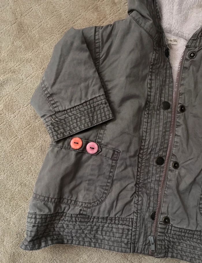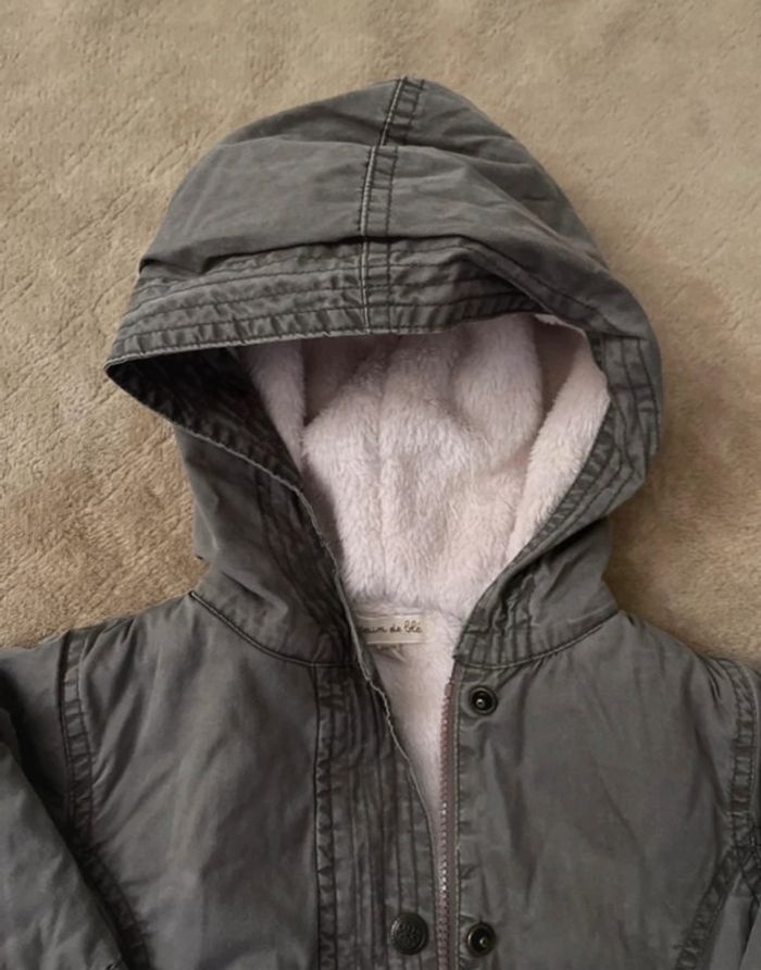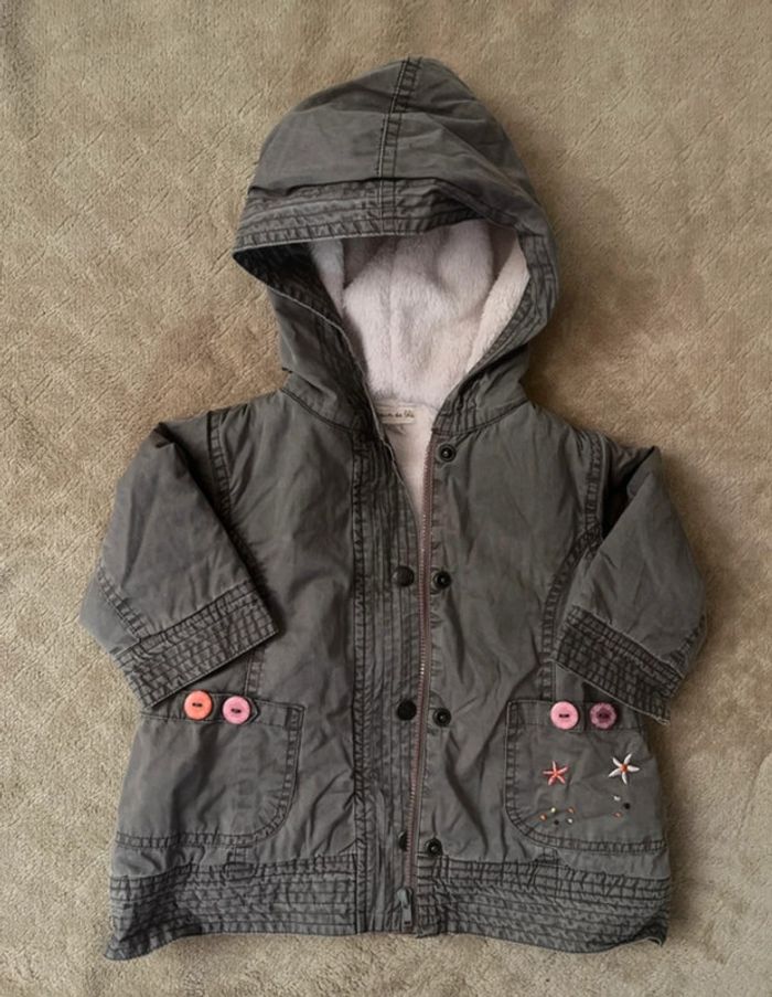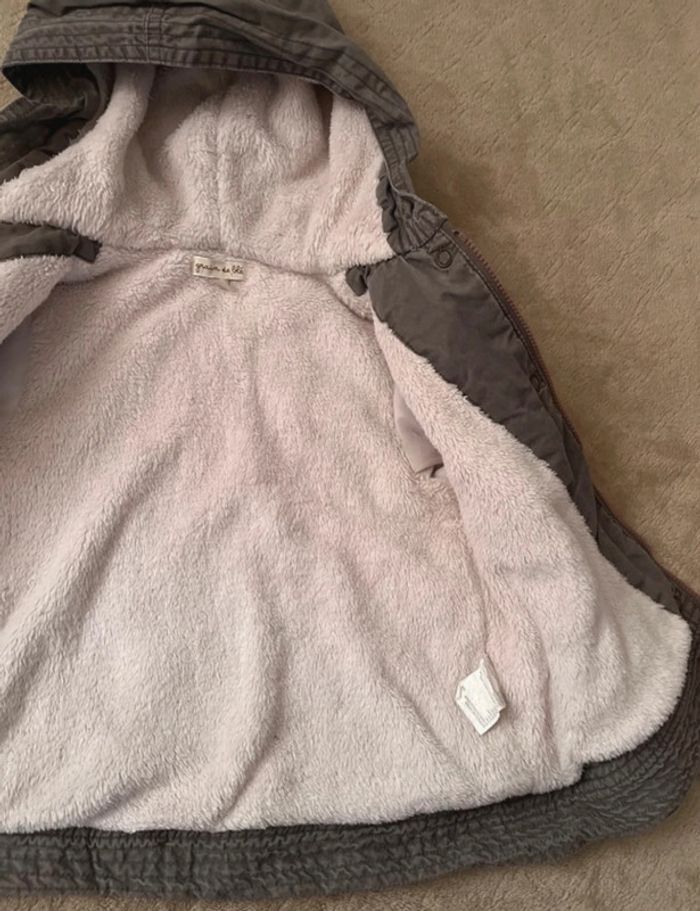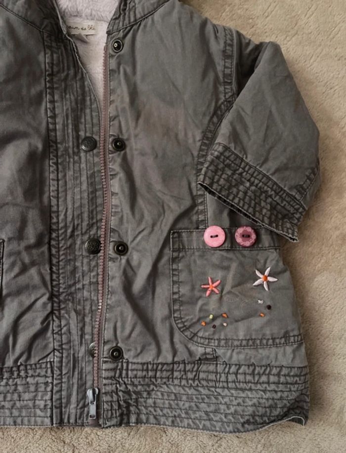 Manteau doublé marron/kaki avec quelques détails , chaud à l’intérieur sauf manches taille 6mois de la marque Grain de blé #manteau #graindeblé #lesventesdediye62bébéfille