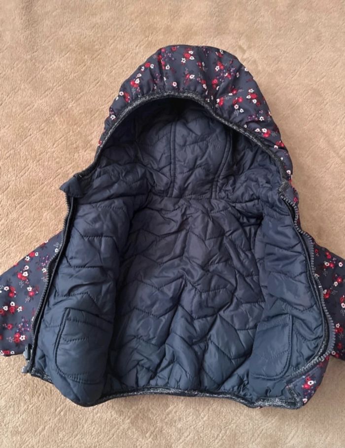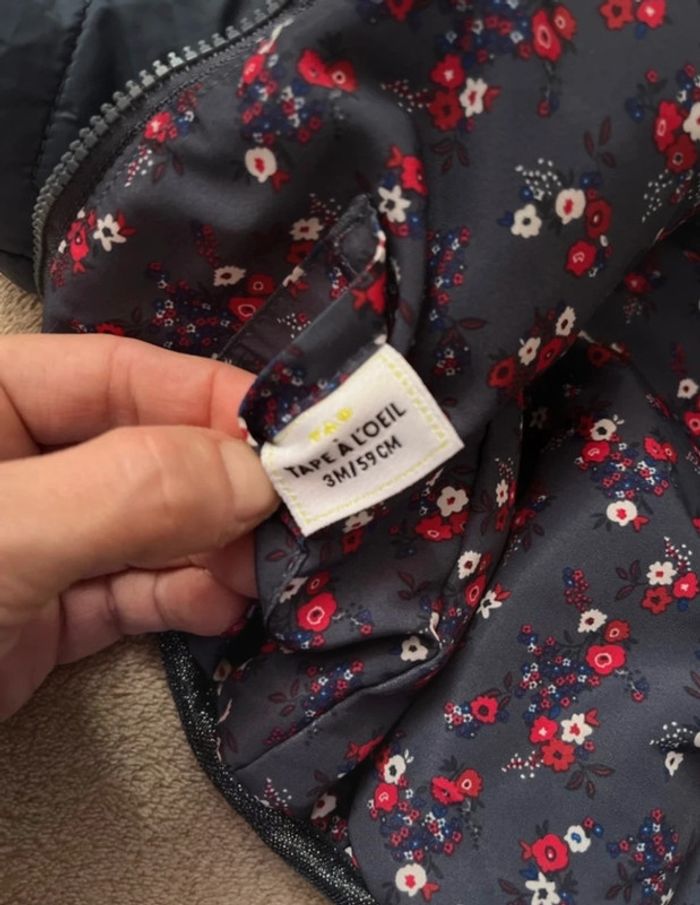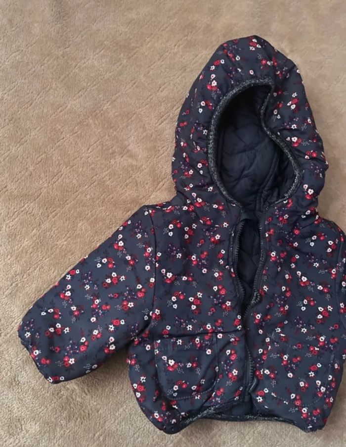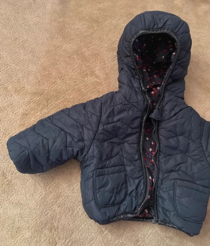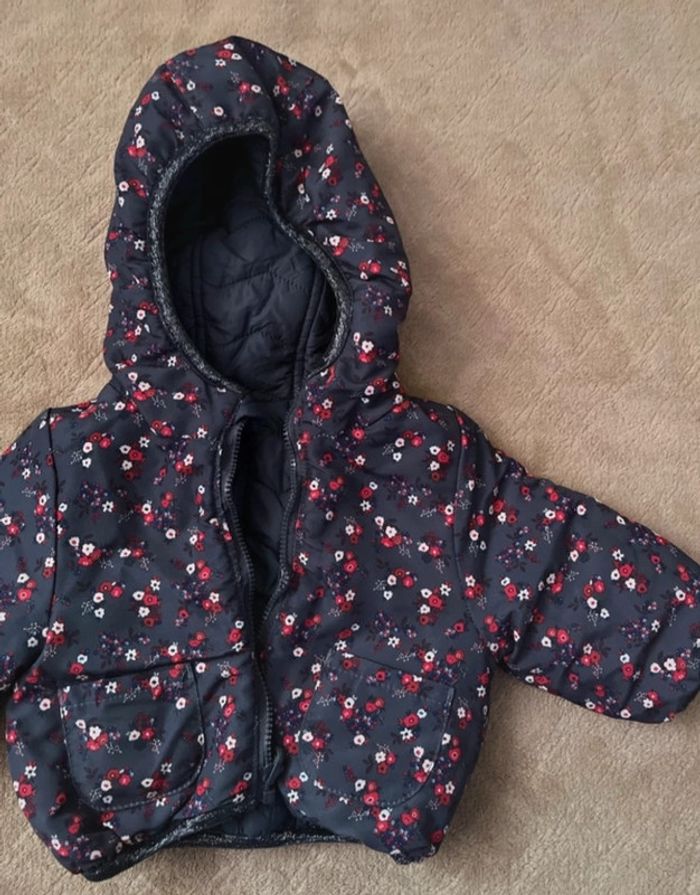 Manteau doublé fille 3mois réversible un côté bleu marine et l’autre violet avec fleurs acheter chez tape à l’œil #manteau #tapealoeil #lesventesdediye62bébéfille