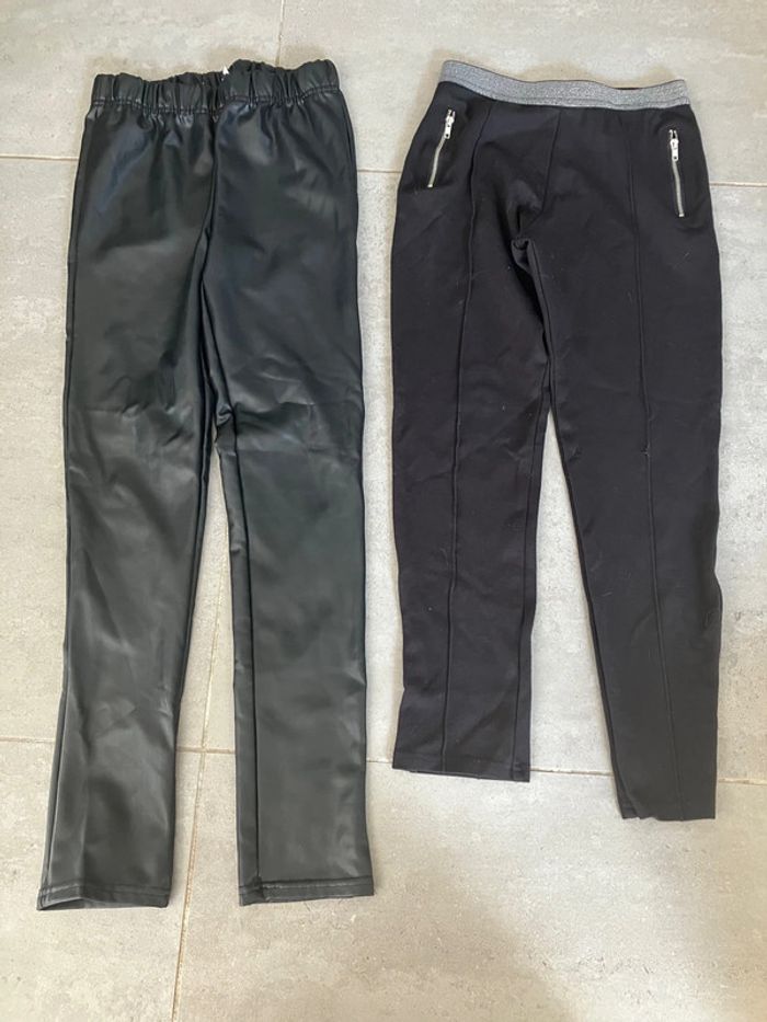 Lot 2 pantalons filles 10 ans / 12 ans 1 jegging noir avec ceinture élastiquée argentée et poches décoratives (étiqueté 12 ans mais taille un peu petit) 1 pantalon similicuir dont le genou gauche est légèrement écorché #angebourgeois10ansfille #angebourgeois12ansfille
